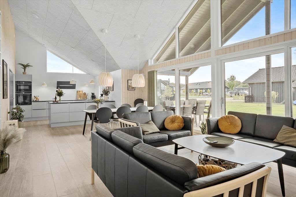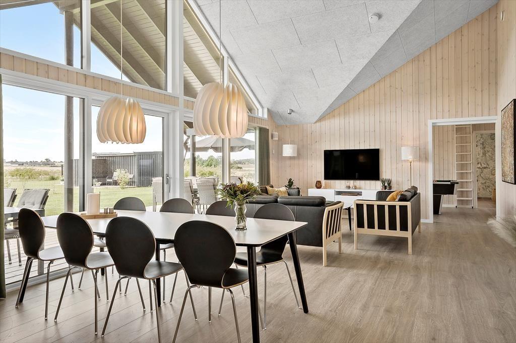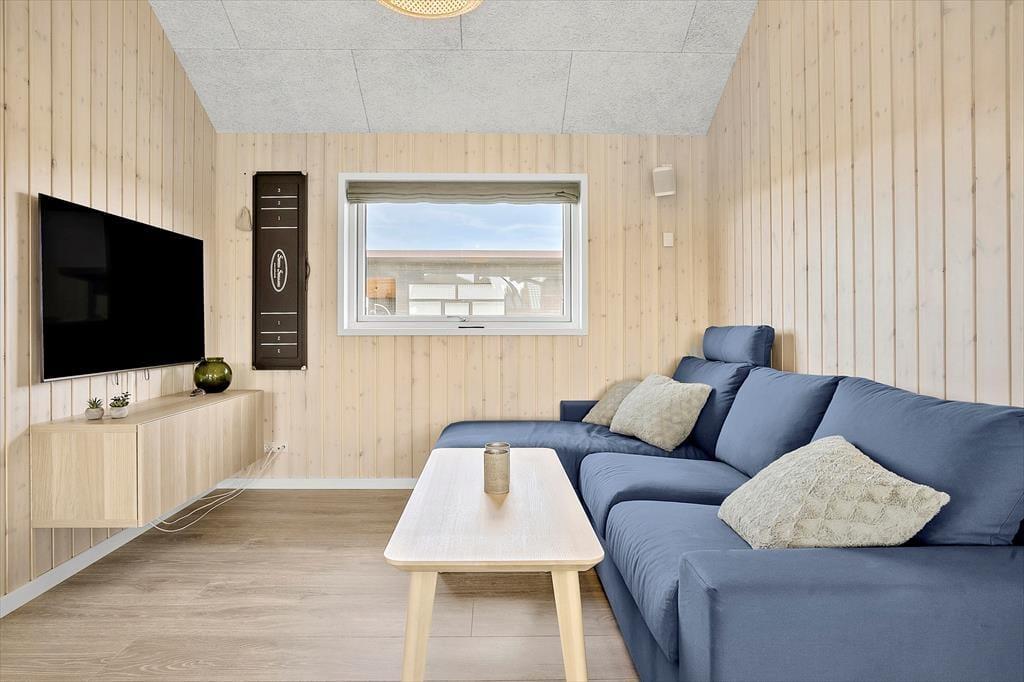 I direkte forbindelse med køkkenet er der stor spiseplads og hyggelig sofagruppe, hvor I alle kan samles efter en god dag på stranden og hygge jer med brætspil, puslespil, snak og måske se en film på det store TV, hvor der er danske, tyske, svenske og norske kanaler + Chromecast. Der er gratis 500/500 MB-internet.
