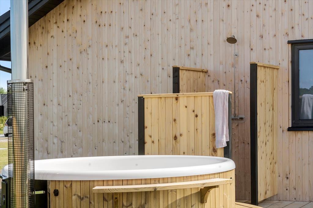 Til huset er der i øvrigt et skønt vildmarksbad og en udebruser, som sikkert vil blive brugt flittigt. Det er herligt med et bad udenfor, efter en dejlig dag med badeture ved havet – uanset årstiden.