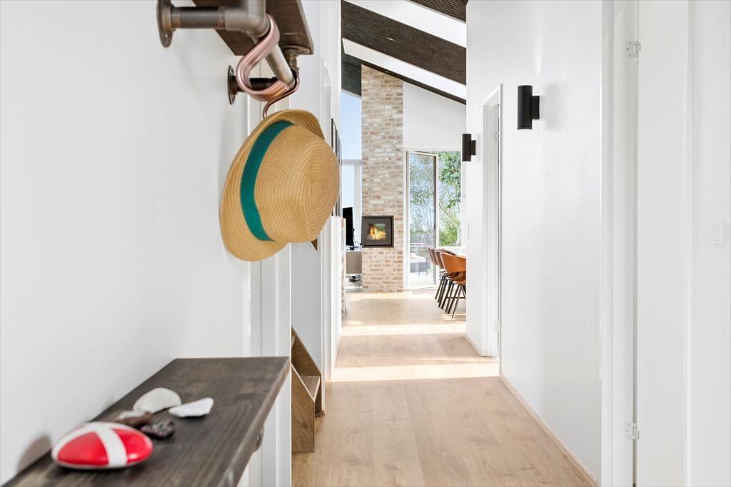 Huset har tre gode soverum + fin stor hems med dobbeltseng og havudsigt, åbent køkken/alrum, stor stue, to flotte badeværelser, det ene med sauna. Her er der mulighed for en super oplevelse for 8 personer.