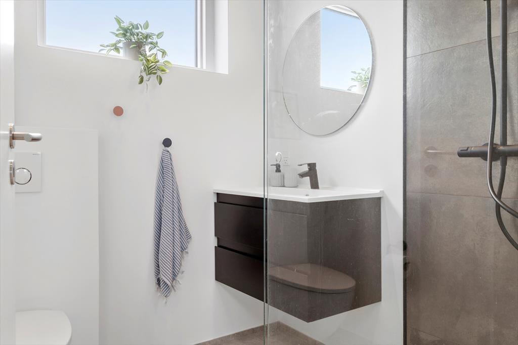 Der er to super flotte badeværelser i huset, begge med toilet og bruser. I det ene badeværelse er der desuden flot sauna. I bryggerset er der vaskemaskine + tørretumbler, så I kan få vasket badehåndklæderne efter en lang dag på stranden.