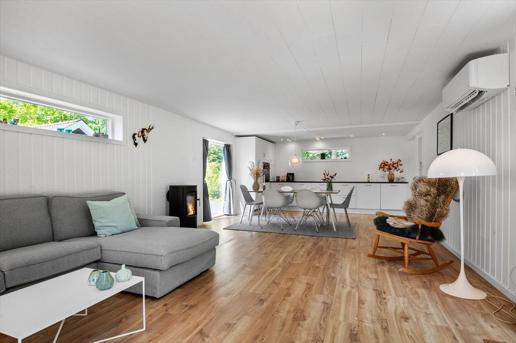 Træd ind i en indretning, som emmer af god, dansk sommerhusstemning – enkel, hyggelig og fuld af varme. Her finder du plads til både ro og samvær med familien, mens de lyse rum inviterer til afslapning og hyggelige stunder sammen. Tre gode værelser sørger for, at både børn og voksne har deres egne oaser til fred og søvn, og det veludstyrede køkken er klar til at skabe madglæde – måske med hjælp fra børnene. Det er her, dagens planlægning sker over en kop kaffe, eller hvor de gode historier samles i de bløde sofaer. Og når aftenens ro falder på, kan du nemt koble af med en film eller et godt spil via husets underholdningstilbud. Din firbenede ven er også mere end velkommen – her er plads til både leg og afslapning for hele familien.
