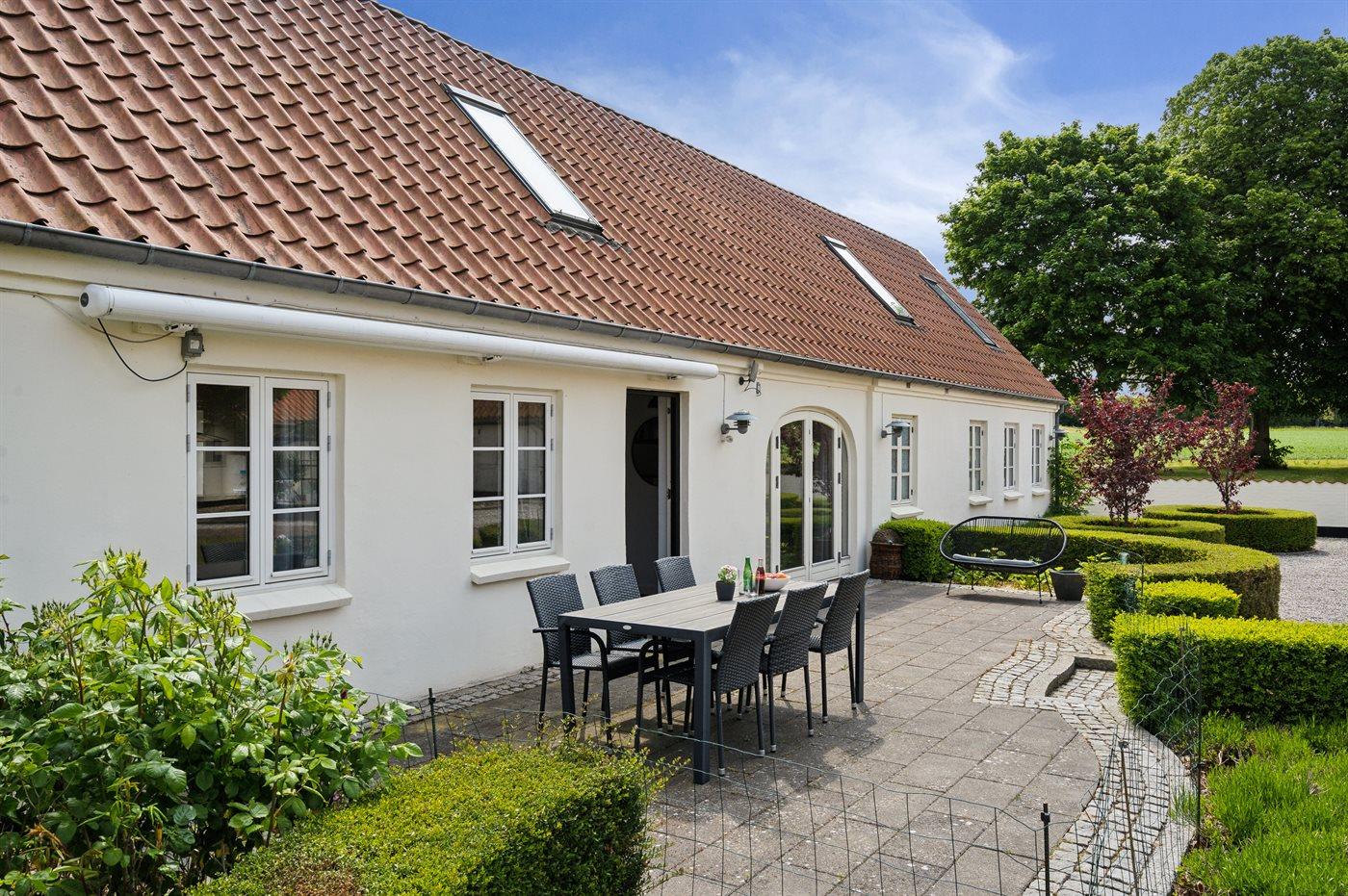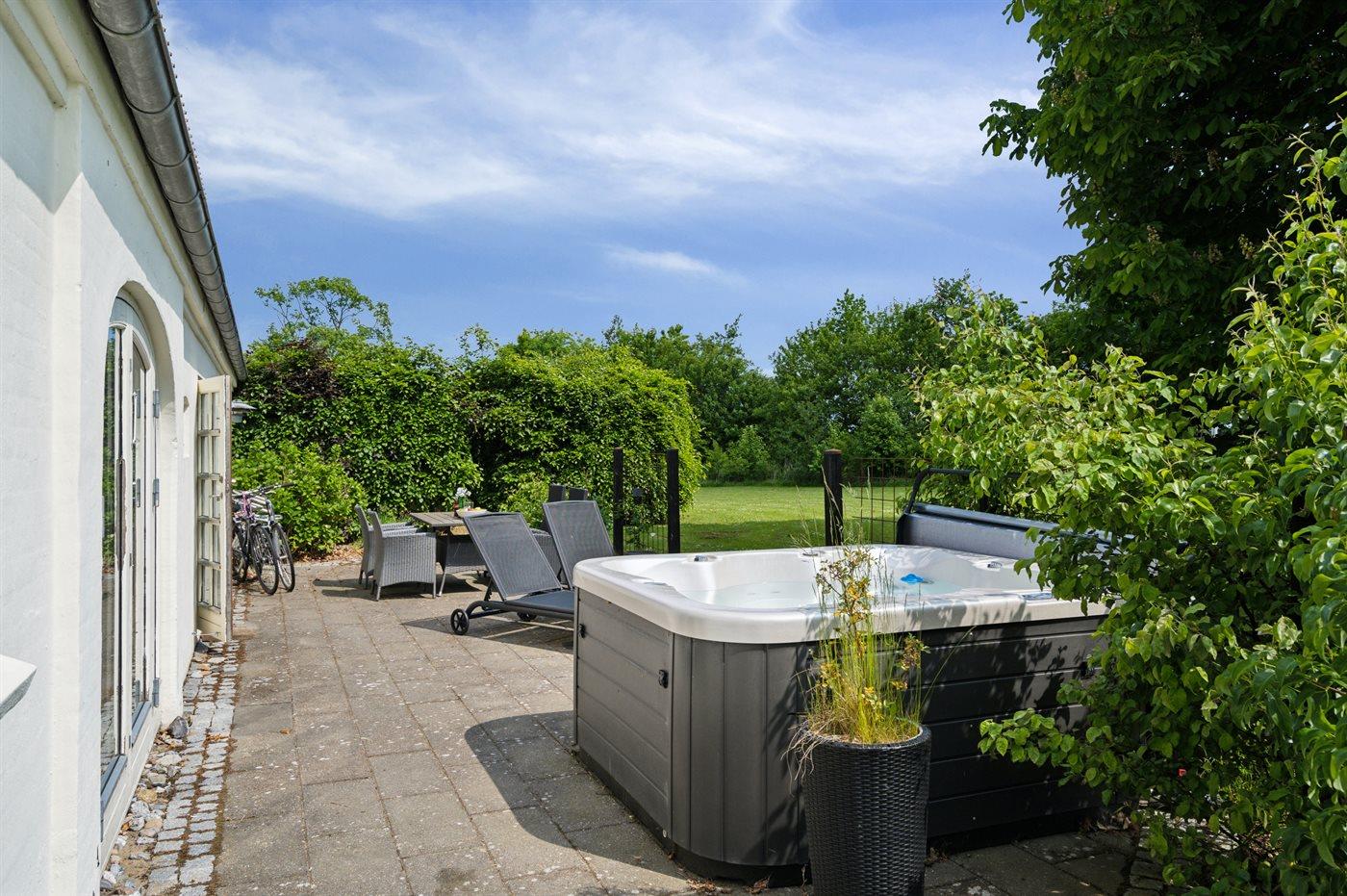 Til boligen hører en stor privat have, hvor der også findes et dejligt udendørs spabad.
