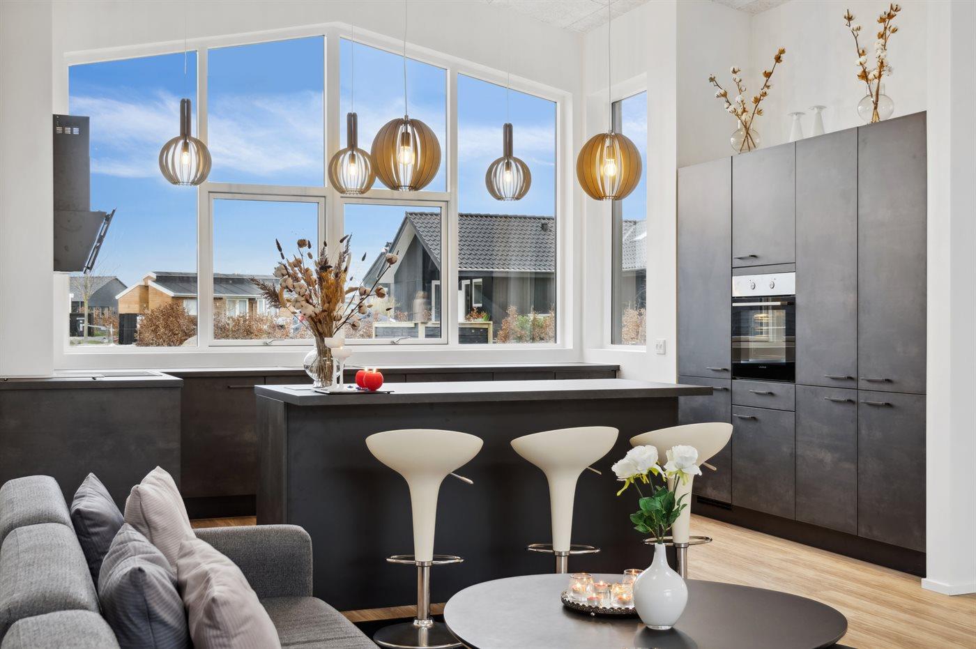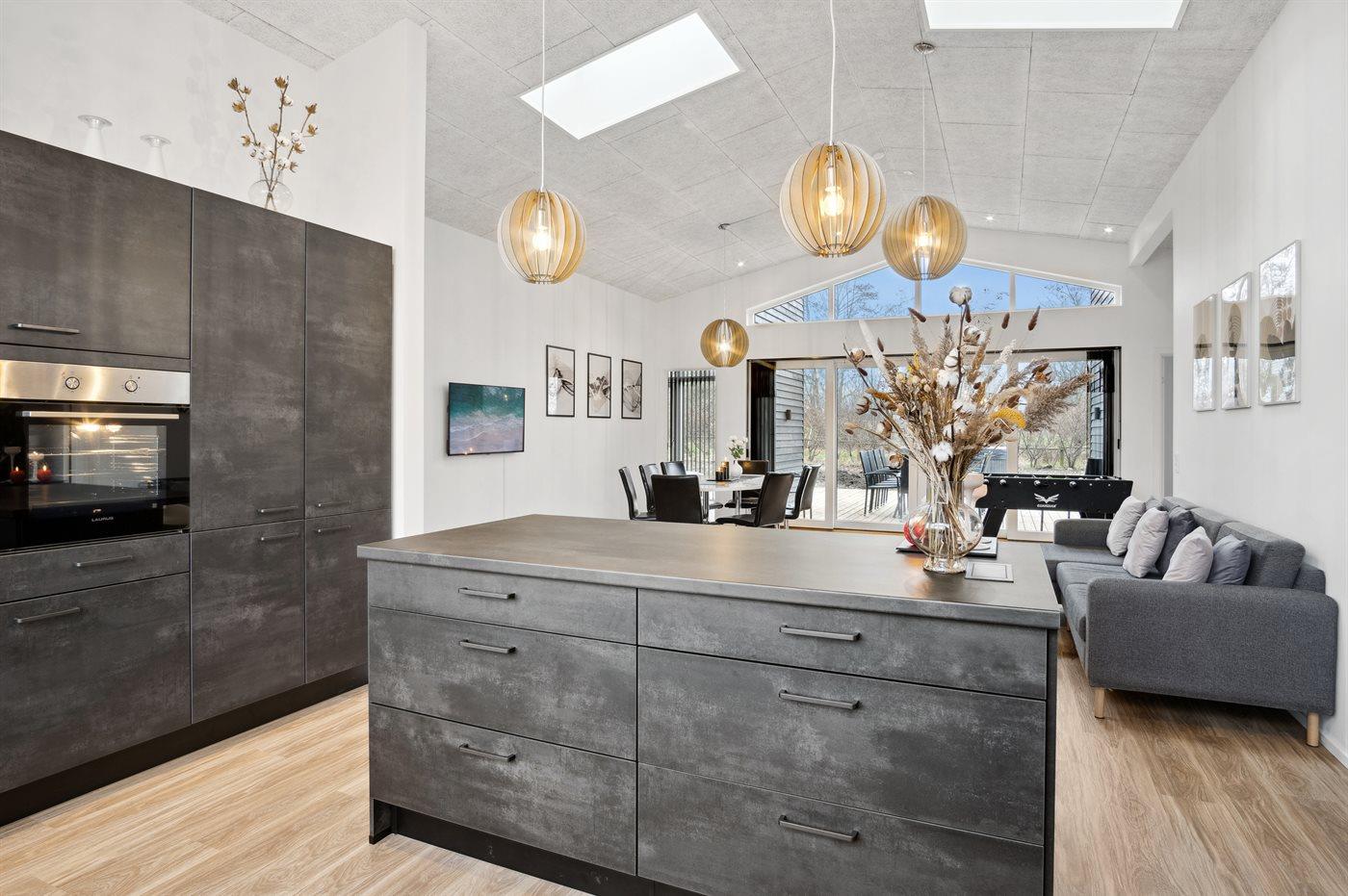 Køkkenet er udstyret med 1 køleskab. Der er 4 induktionskogeplader, varmluftovn, mikrobølgeovn samt opvaskemaskine.