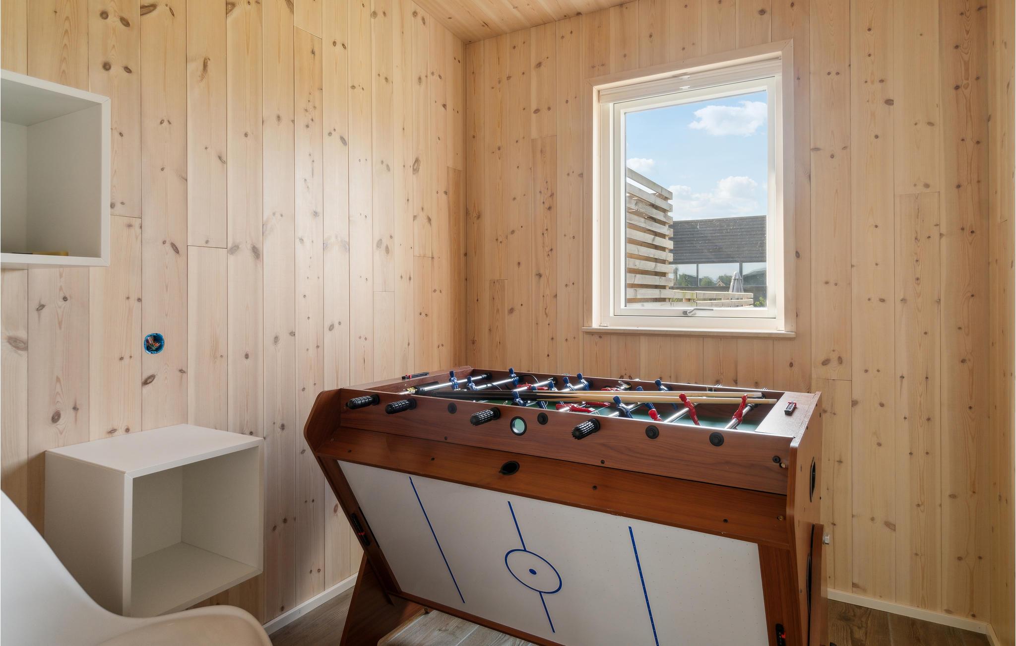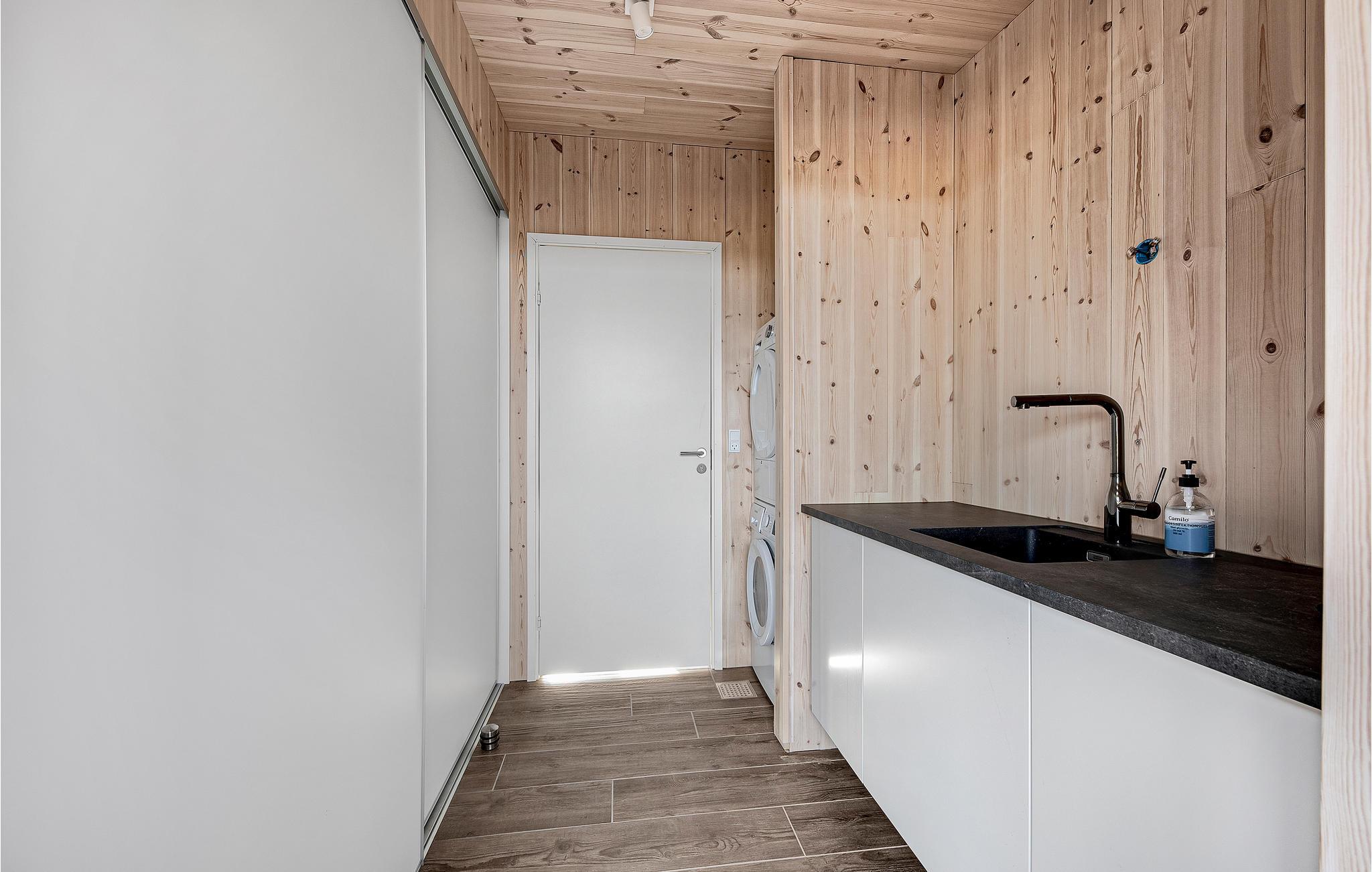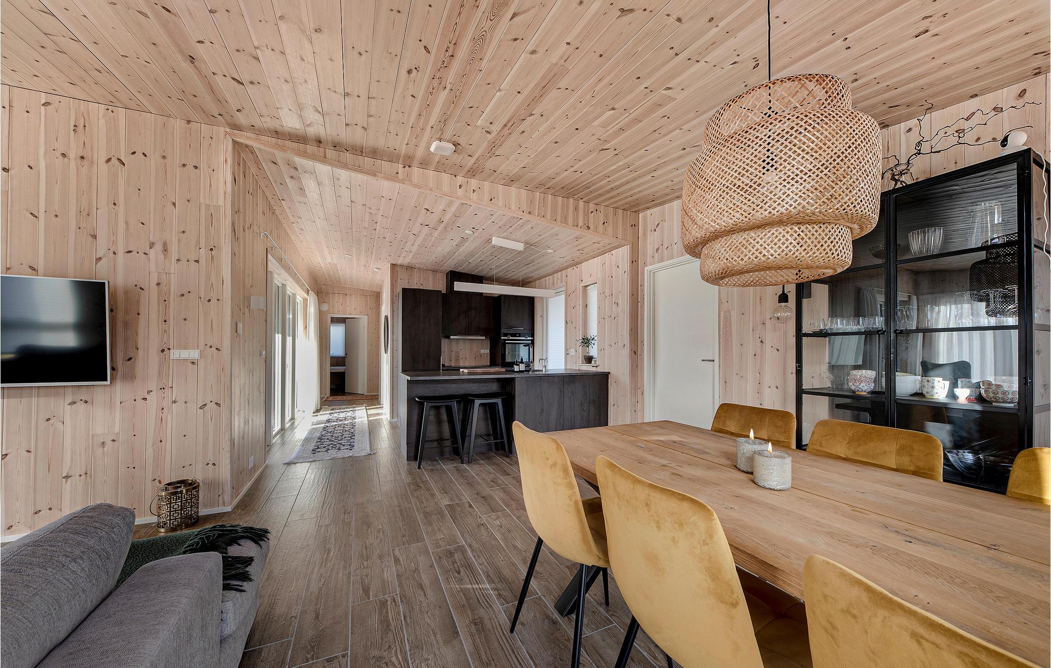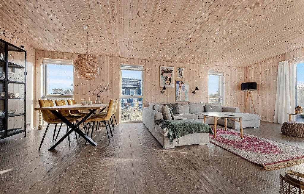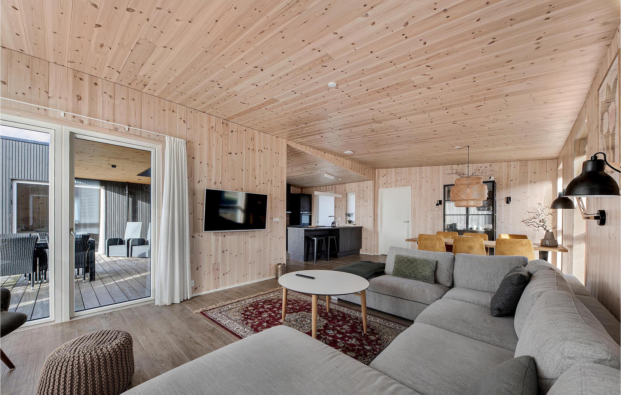 Hold en behagelig ferie sammen med jeres familie i dette skønne feriehus, som med sin træbeklædning skaber en varm og hyggelig atmosfære. Nyd tiden i den lyse stue, som bliver jeres naturlige samlingspunkt. Her kan I slappe af sammen i sofaen, se jeres yndlingsfilm, lave mad sammen eller spille brætspil. Når vejret er varmt, kan I benytte den store solterrasse og dase på de komfortable havemøbler, se hestene græsse på nabofolden eller tilberede en lækker grillmiddag og nyde udendørslivet sammen.