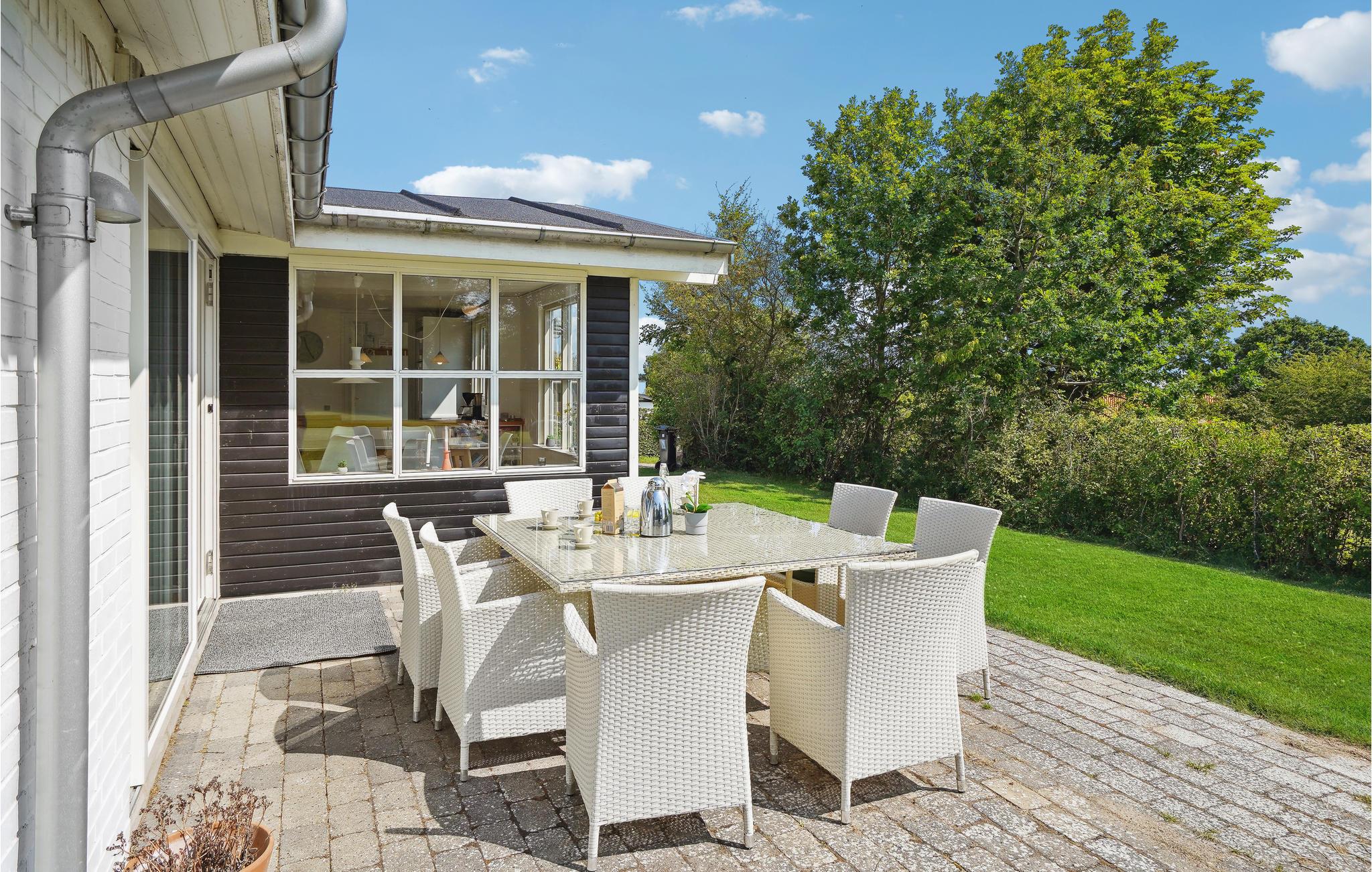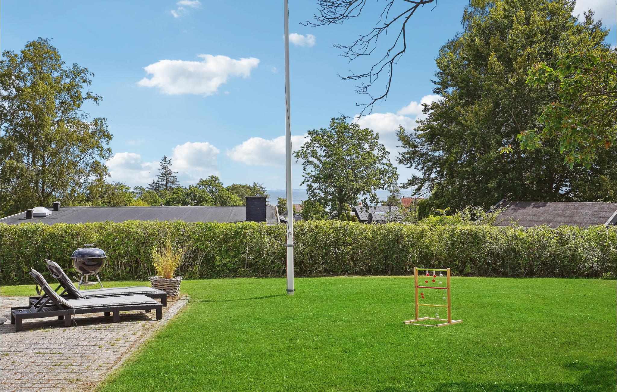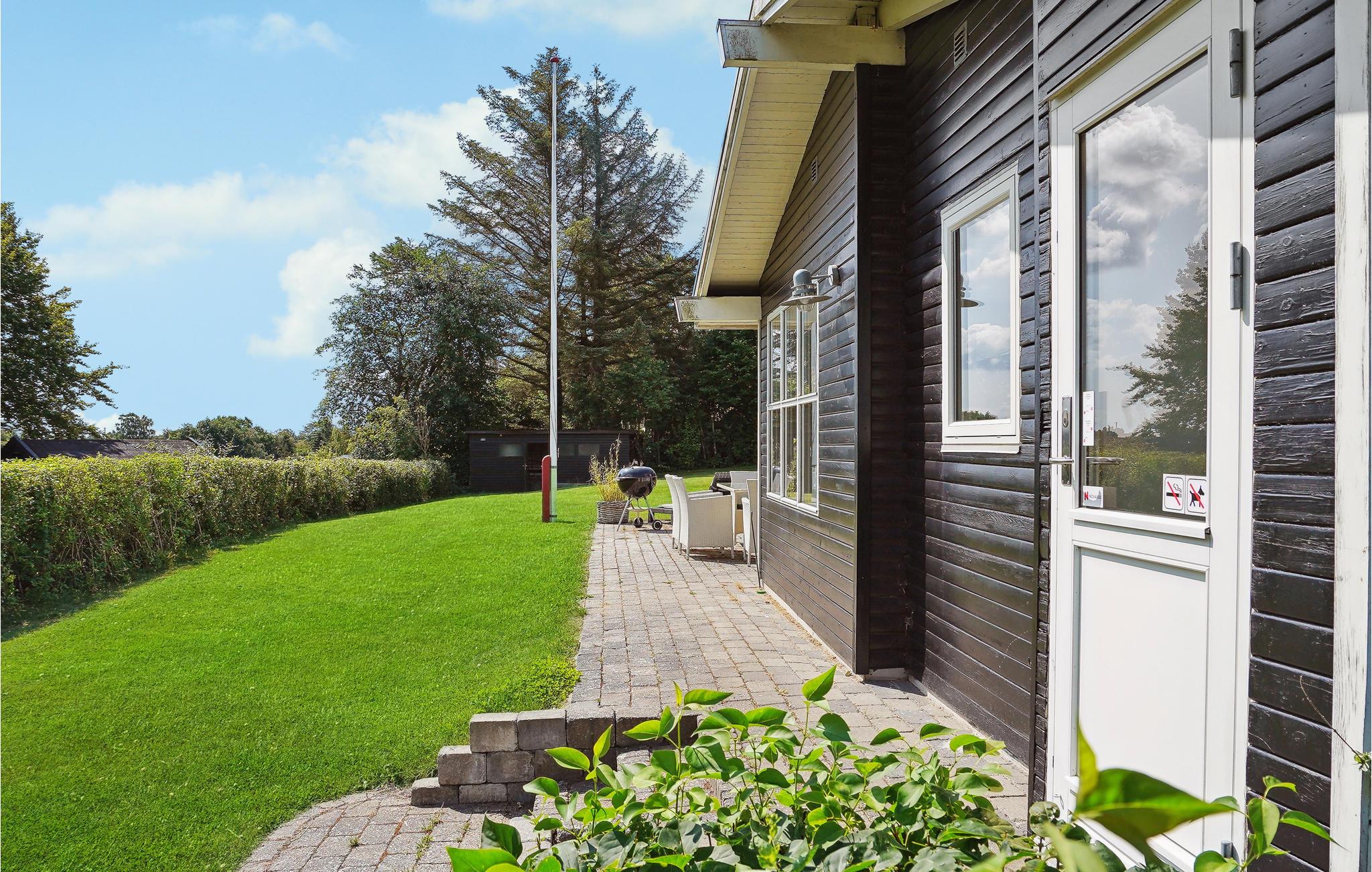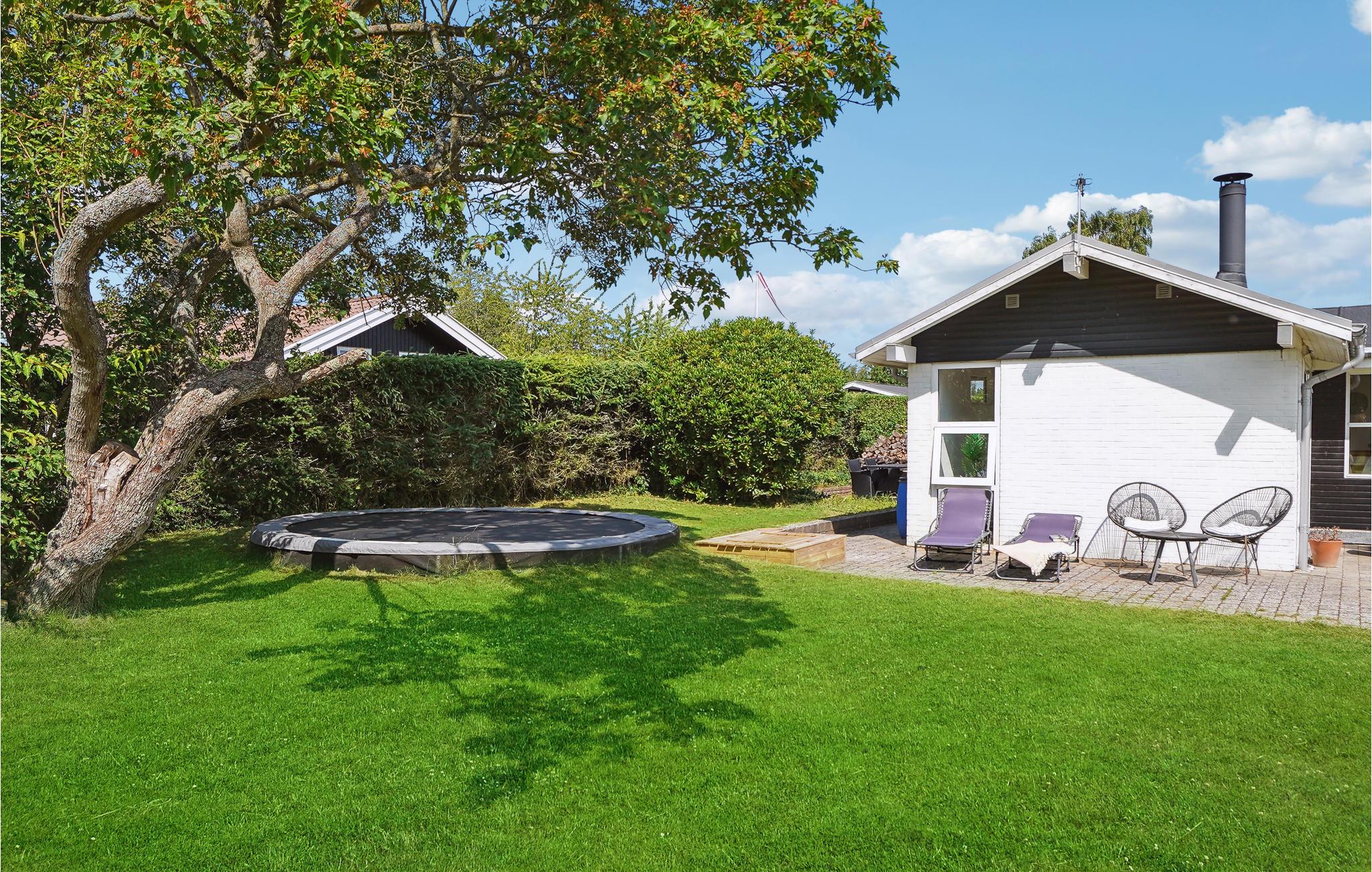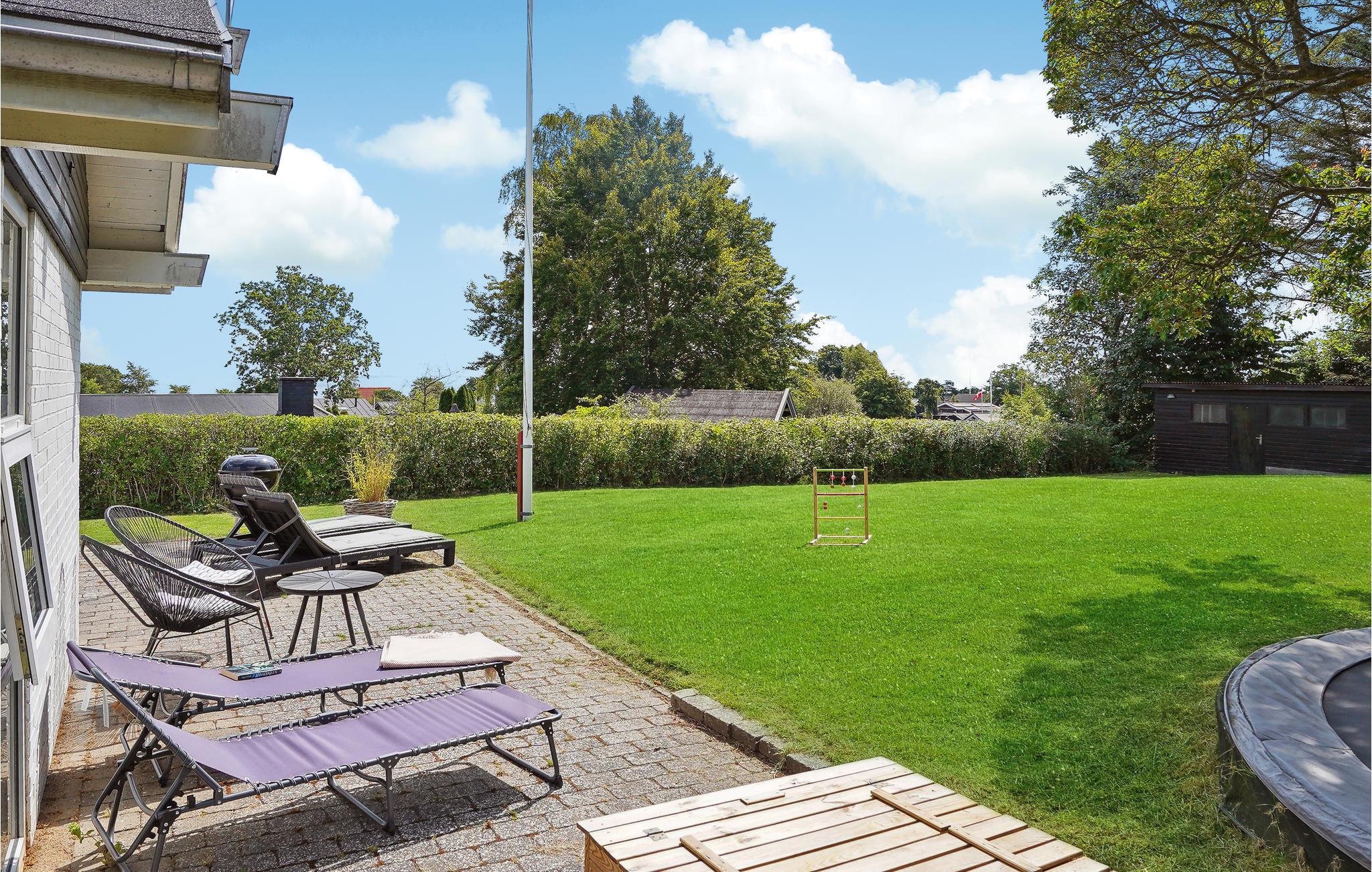 Udenfor venter en dejlig, åben grund, hvor børnene kan løbe og lege. På de lune sommeraftener kan I dække op en hyggelig grillmiddag under åben himmel.