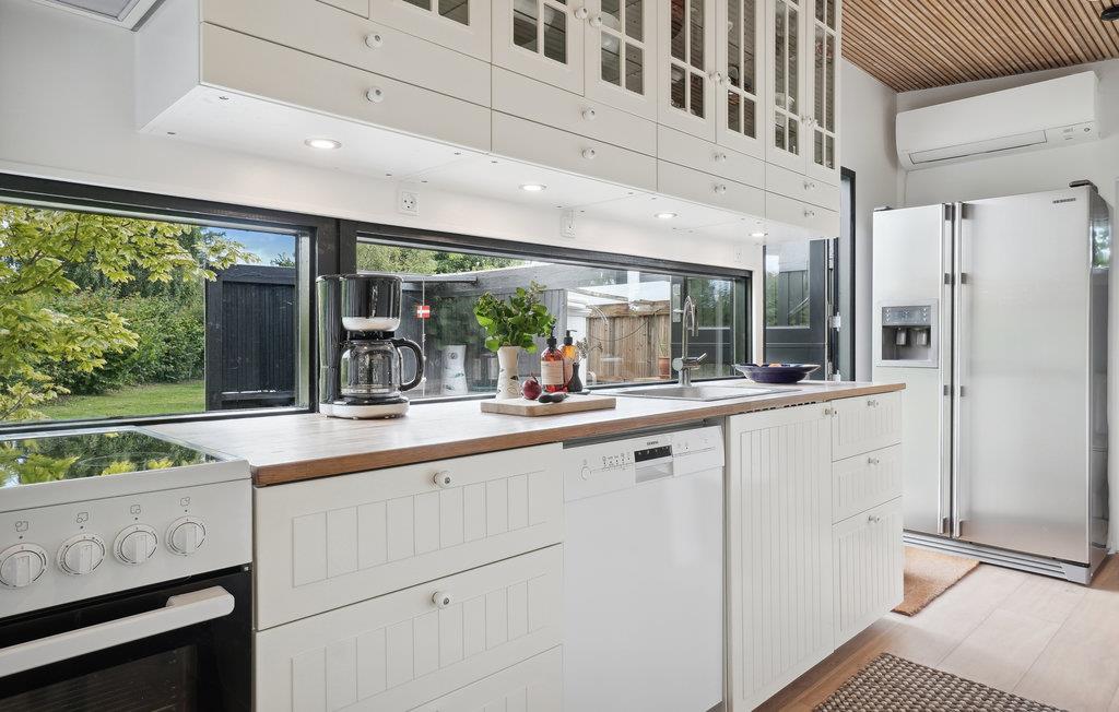 Lyst, stilfuldt feriehus beliggende kun få skridt fra Saksilds fremragende sandstrand.
