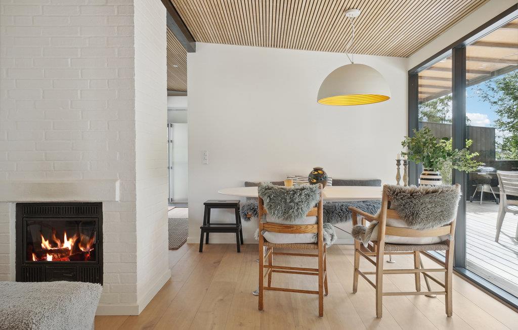 I Østjyllands idylliske natur byder dette skønne feriehus jer velkommen til et behageligt ophold. Indenfor venter jer et smagfuldt kvalitetsinteriør i lys, nordisk stil, hvor I straks vil føle jer hjemme. Tilbring hyggelige aftener omkring spisebordet med lækre måltider og gode samtaler og sæt jer godt til rette i sofaen på kølige dage, mens I fordyber jer i ferielæsningen og lytter til brændeovnens knitren. Når solen er fremme, inviterer den lækre træterrasse til afslappende timer i det fri, mens ungerne boltrer sig på græsplænen.