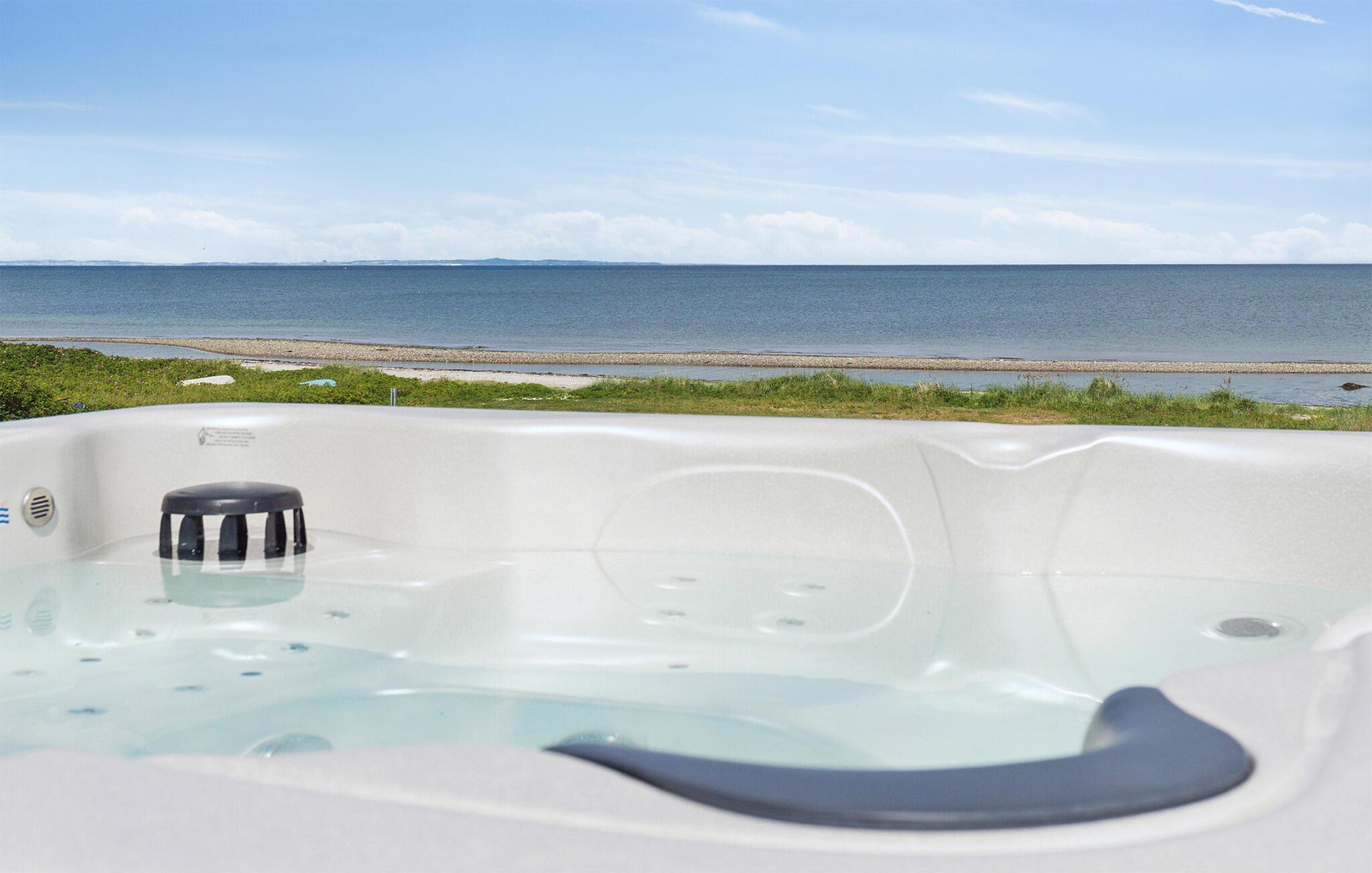 Moderne feriehus ved Saksild Strand med spabad, panoramaudsigt og luksuriøse faciliteter.