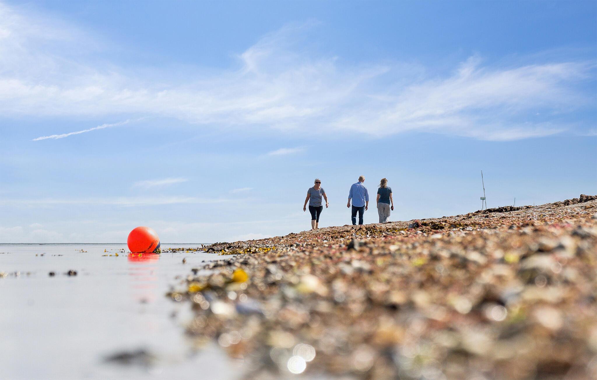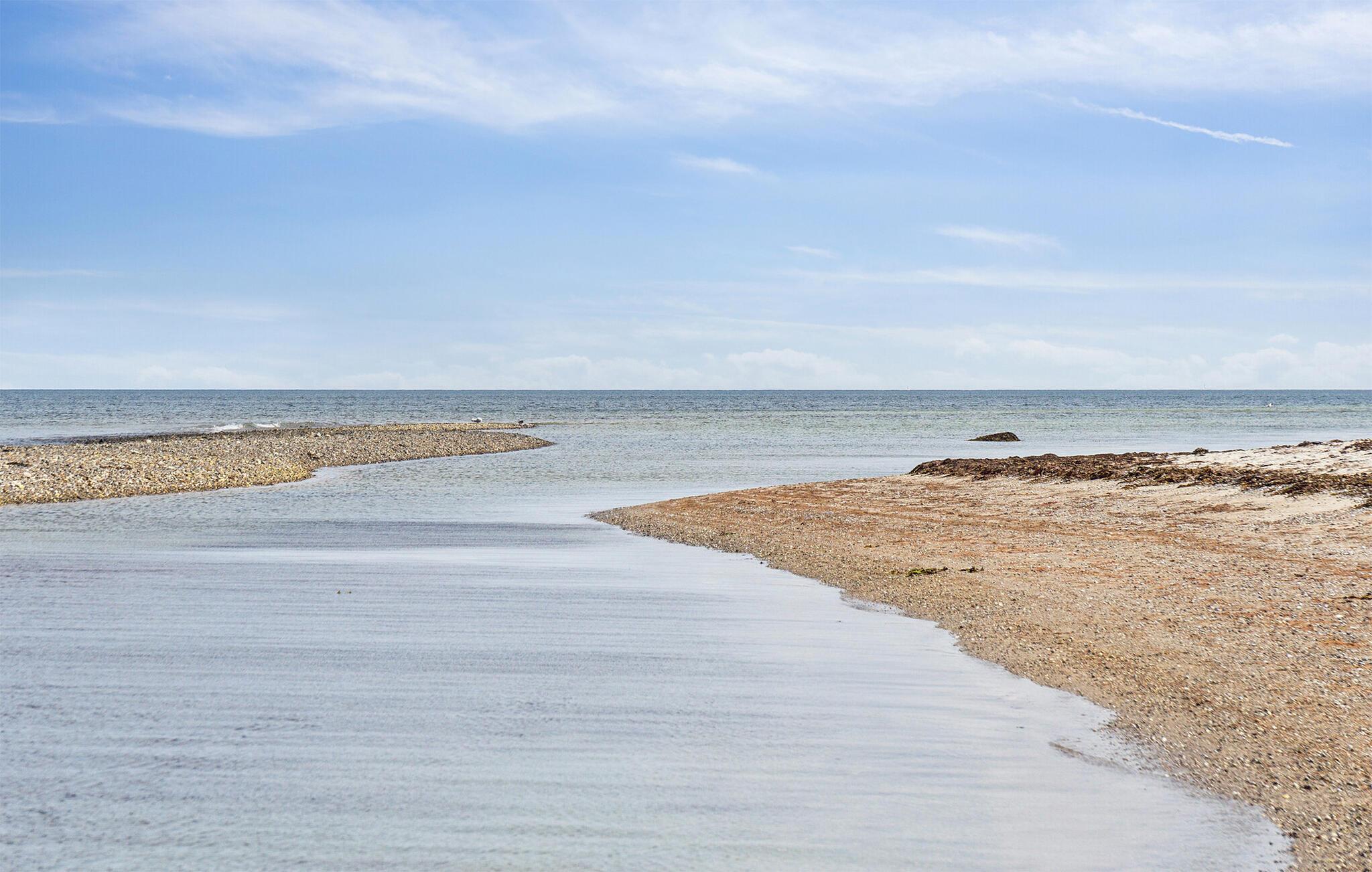 Smid håndklædet over skulderen og gå de få skridt til stranden, hvor I kan begrave fødderne i sandet og tage en skyller i det lave vand.
