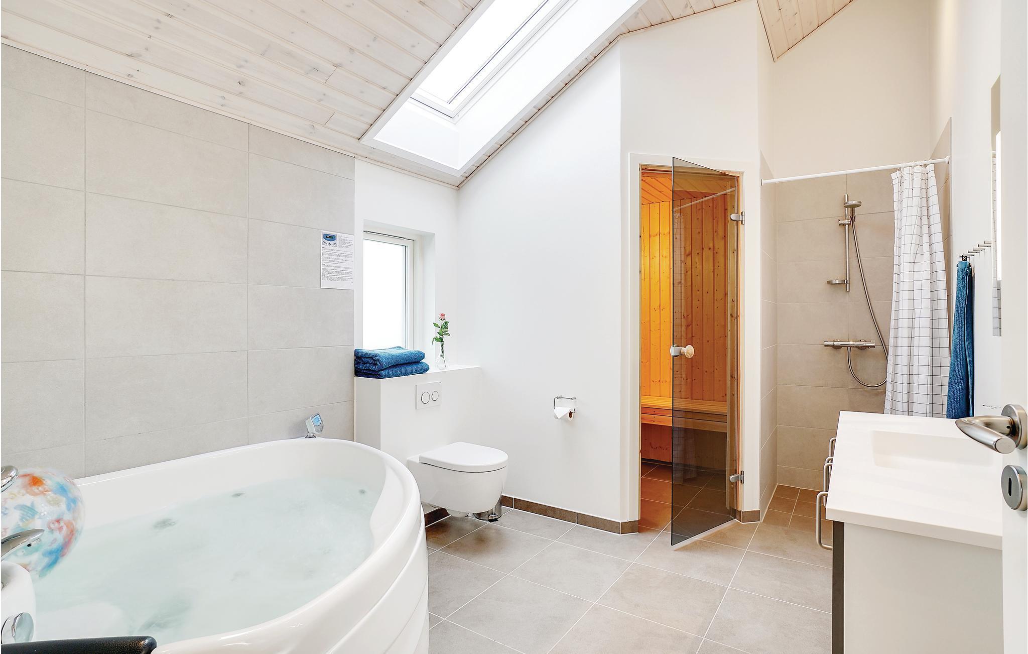 Skønt sommerhus tæt på Saksild Strand med aktivitetsrum, sauna og spabad, perfekt til familier og venner.