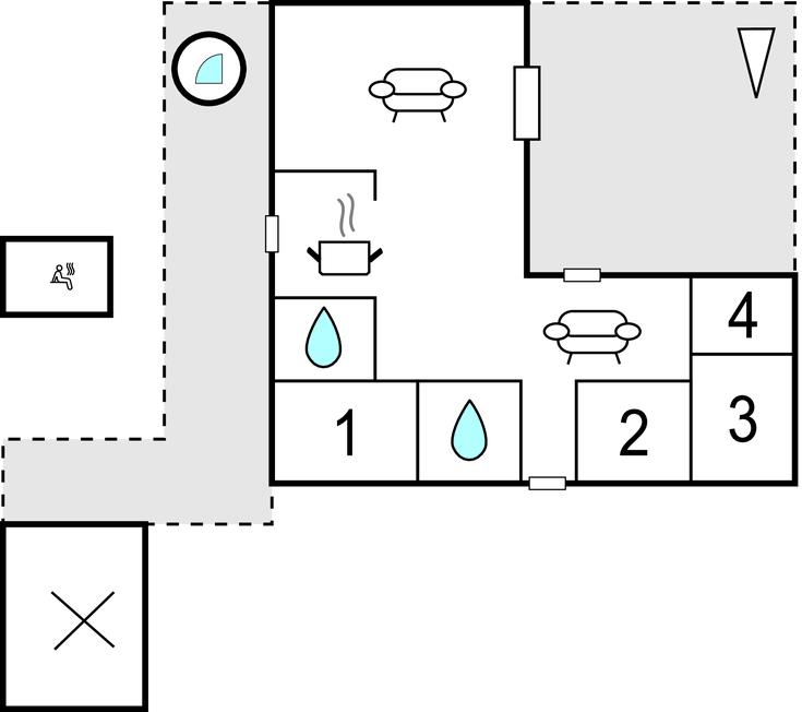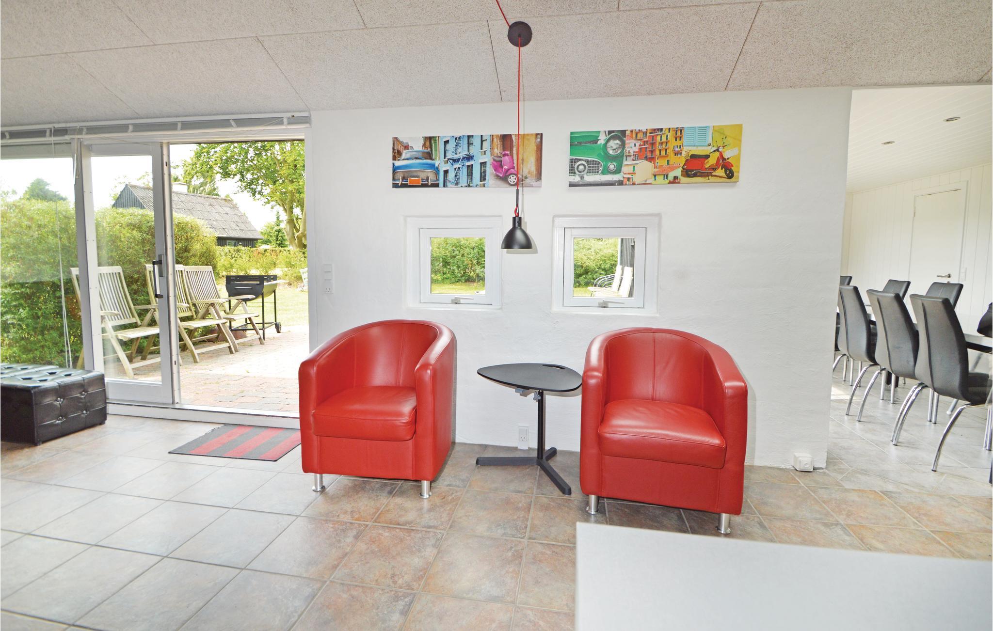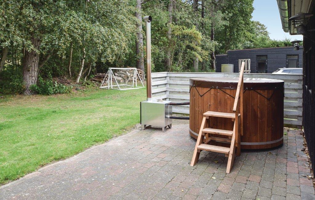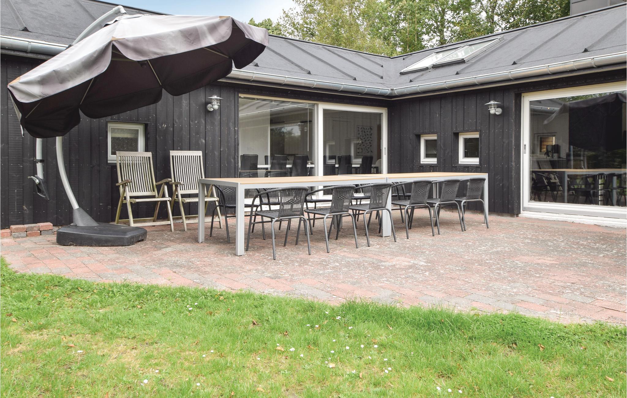 Velkommen i dette moderne og lyst indrettede feriehus. Det centrale opholdsrum kombinerer en spiseafdeling i åben forlængelse med et moderne, veludstyret køkken og en sofaafdeling med brændeovn. Her er masser af plads til at brede sig, spille brætspil, se film eller varme sig på en kold efterårsaften. Hvis vejret er lunt, er der også god plads ude på terrassen til at nyde måltiderne under åben himmel. Her kan I også slappe af eller nyde en kop kaffe, mens børnene leger og boltrer sig på plænen. Der er også en hyggelig sauna til de kolde dage og et vildmarksbad - hvilket bedre sted at afrunde en afslappet feriedag i godt selskab og en drink i hånden?