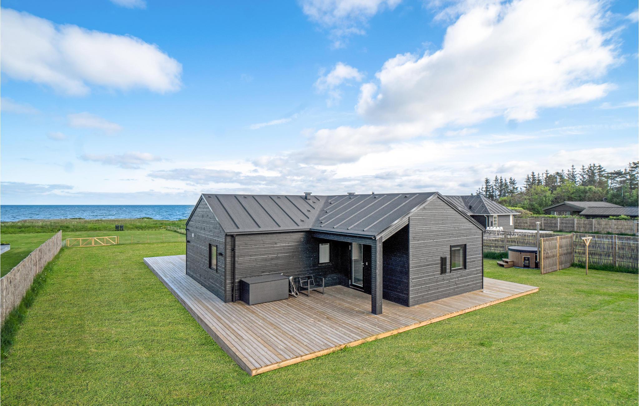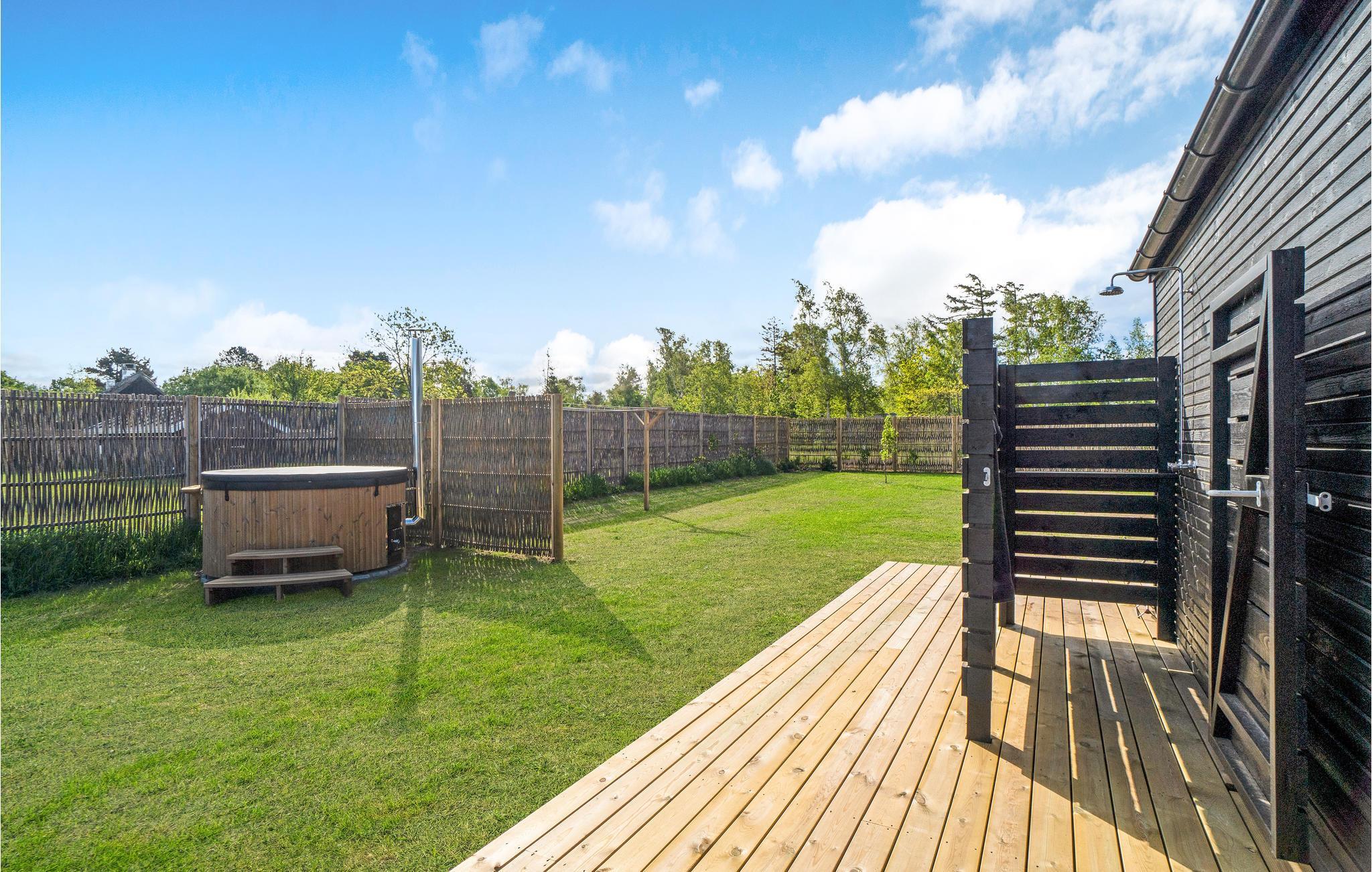 Huset ligger på en stor, solbeskinnet grund med grill, loungemøbler og solsenge, hvor I altid kan finde en læfuld plads på terrassen, der omgiver hele huset. På de lyse sommeraftener kan I sidde ved bålstedet til langt ud på aftenen, eller I kan sidde i vildmarksbadet og nyde havudsigten med et glas bobler eller en kop te.