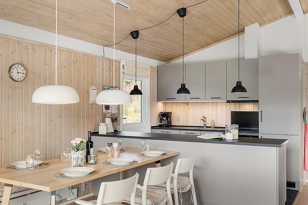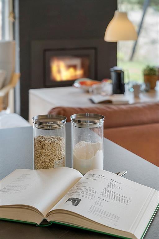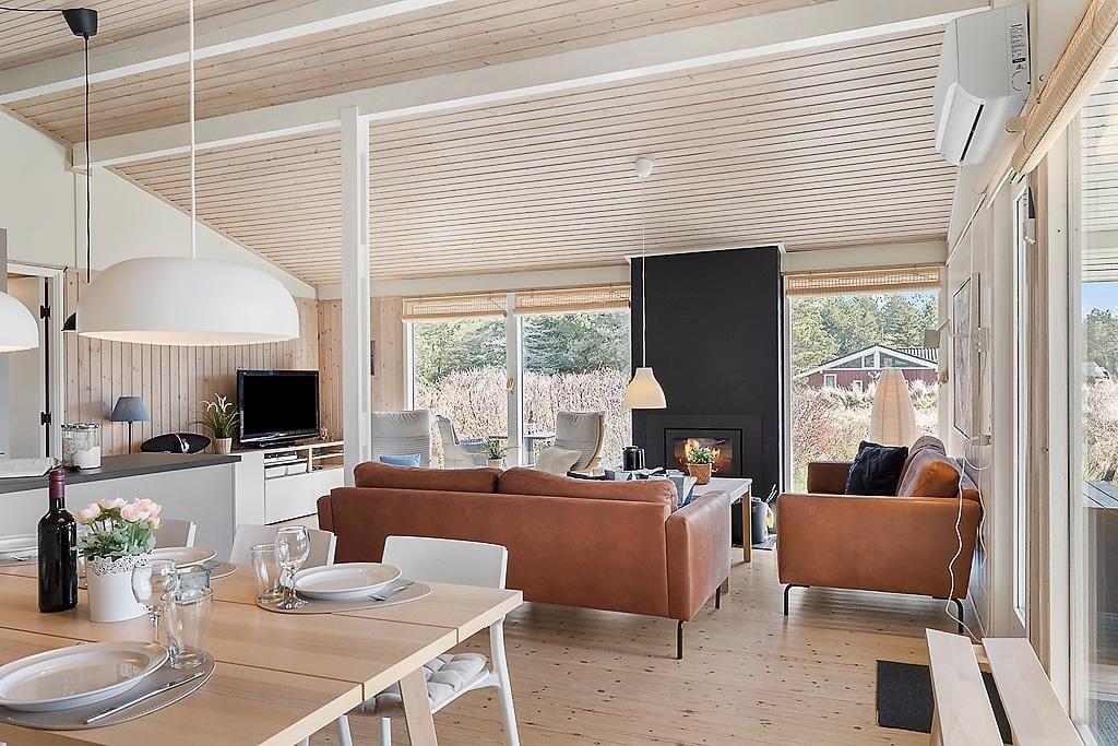 Når du træder ind i sommerhuset, mødes du af lyse, indbydende værelser, der skaber en varm og hyggelig atmosfære. Den åbne planløsning binder stuen og køkkenet sammen, og med store vinduespartier strømmer sollyset ind og giver et dejligt lys i hele rummet. Den smukke brændeovn er en klar favorit til de køligere aftener, hvor du kan nyde en god bog eller bare sidde og slappe af med en varm drik. De rummelige værelser giver mulighed for, at hele familien kan føle sig hjemme, og den afslappende atmosfære gør det til et perfekt sted at lade op efter en dag med aktiviteter.
