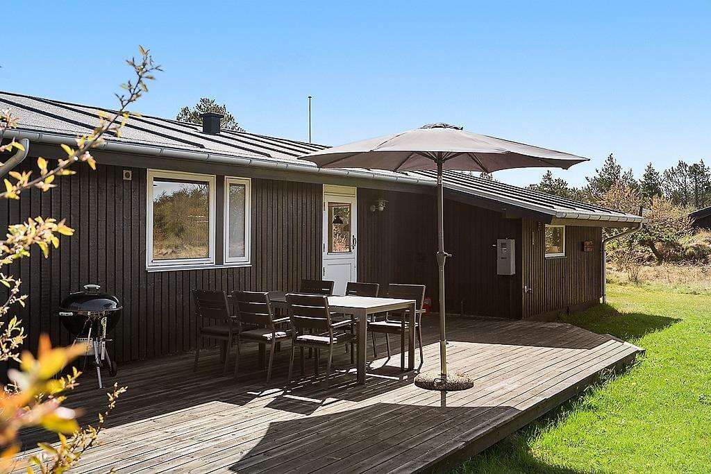 Når du træder udenfor, kan du lade dig indhylle i den rolige natur og den idylliske have. Den hyggelige terrasse er det perfekte sted at tilbringe tid sammen under åben himmel – uanset om det er til morgenkaffen, en frokost eller et afslappende måltid om aftenen. Terrassen er skærmet af træer og buske, hvilket skaber en privat og fredfyldt oase, hvor du kan nyde solen i fred og ro. Den grønne have omkring sommerhuset indbyder til både leg og afslapning, og du vil hurtigt finde ud af, at det er et dejligt sted at tilbringe både dage og aftener.
