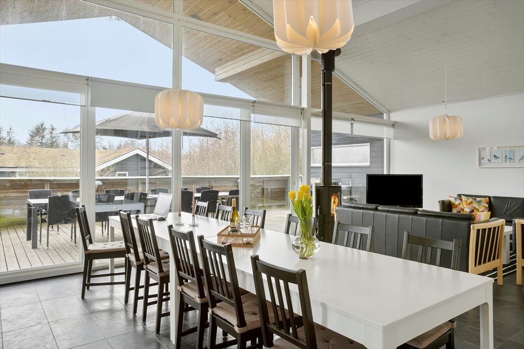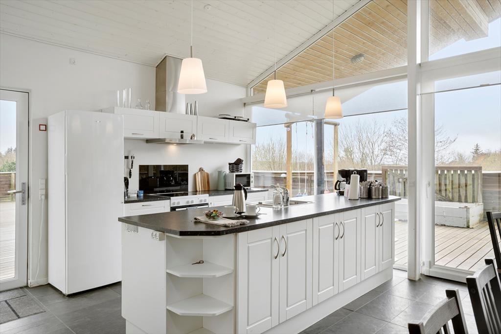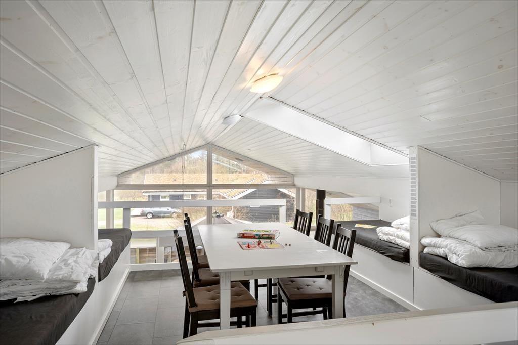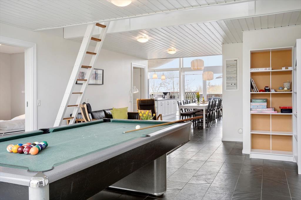 Når du træder ind i sommerhuset, mødes du af en lys og indbydende atmosfære, hvor rummeligheden og de funktionelle løsninger skaber en perfekt base for ferien. Den store opholdsstue er det oplagte samlingspunkt, hvor hele familien kan slappe af sammen, mens du kan nyde en god film eller hygge dig med et spil. I aktivitetsrummet står poolbordet klar til sjove turneringer, og den store hems giver ekstra plads til både børn og voksne, der ønsker at trække sig lidt tilbage. Der er virkelig plads til, at alle kan finde deres eget hyggested. Fra det åbne køkken kan du nemt følge med i de sjove samtaler, mens du forbereder lækre måltider til familien.
