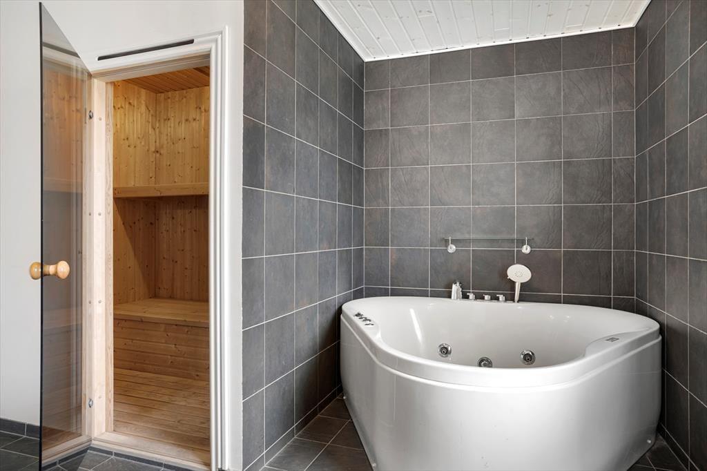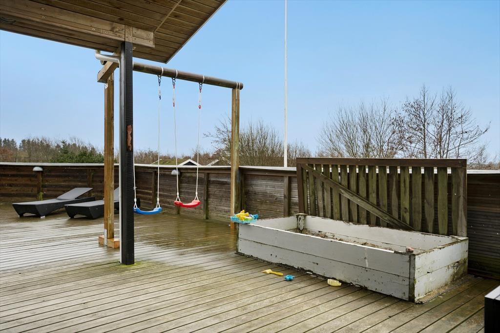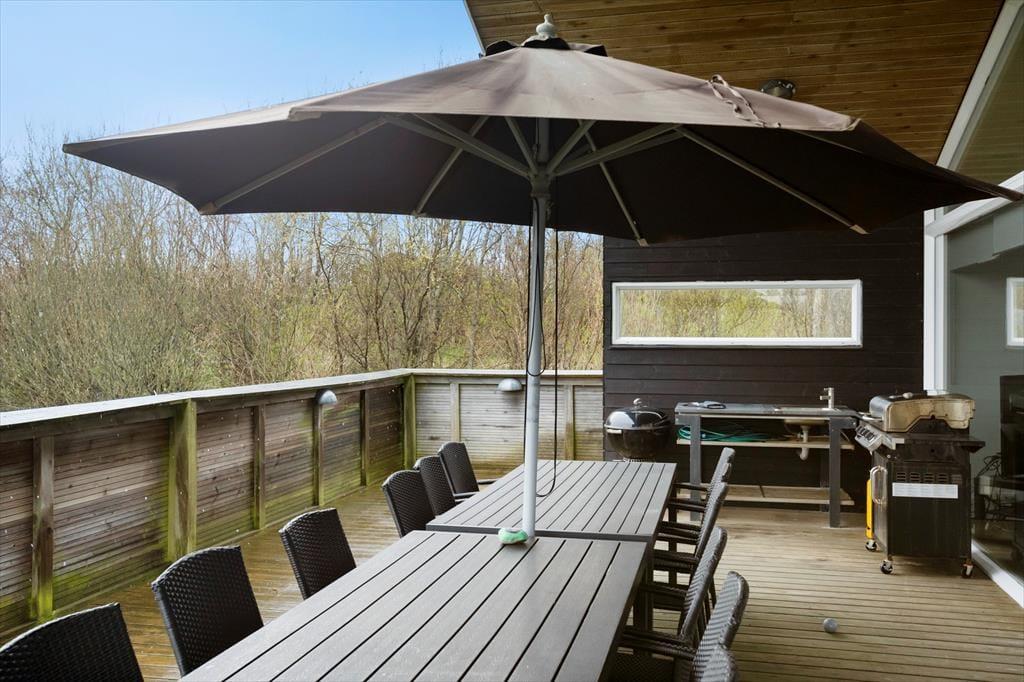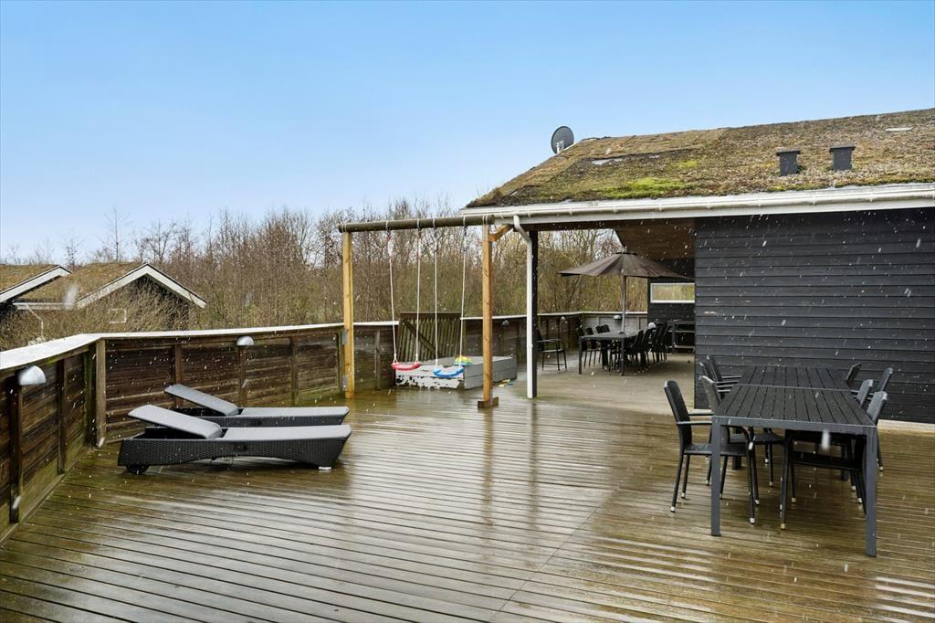 Sommerhuset fortsætter sin indbydende stil også ude. Den store terrasse er den ideelle ramme for solrige dage, hvor du kan slappe af på havestolen og nyde en god bog eller måske bare tage en velfortjent pause. Når solen er ved at gå ned, kan du tænde op i grillen og tilberede et dejligt måltid, mens du ser solen gå ned over den fredelige natur. For dem, der ønsker lidt ekstra forkælelse, er spabadet det perfekte sted at afslutte dagen med en afslappende stund. Den store, åbne terrasse giver dig masser af plads til både leg, afslapning og hyggelige stunder i solen.