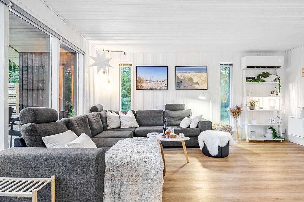 På Lille Fiskerbanke 1 i Saltum venter et sommerhus, der er blevet gennemgribende renoveret i 2025 og i dag fremstår moderne, lyst og yderst indbydende. Her er der tænkt over både detaljer, materialevalg og helhedsindtryk, så du kan nyde ferien i stilfulde og harmoniske rammer. De rolige, grønne omgivelser skaber den perfekte kulisse for afslapning og nærvær – samtidig med at du bor tæt på både Vesterhavet og Blokhus’ hyggelige byliv. Det er et sommerhus, hvor feriestemningen indfinder sig med det samme.