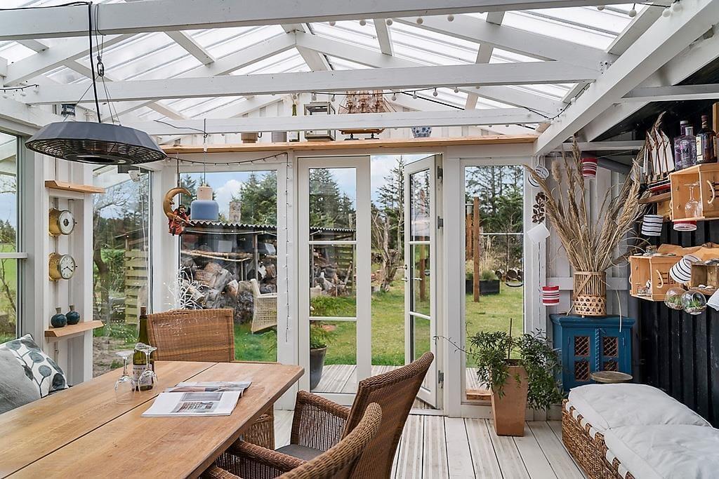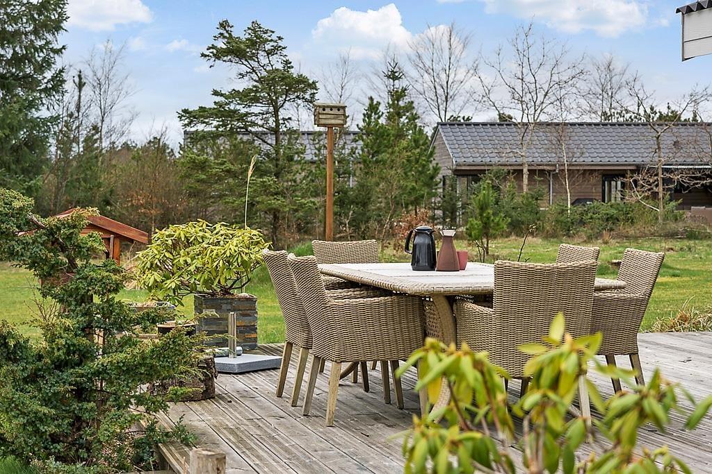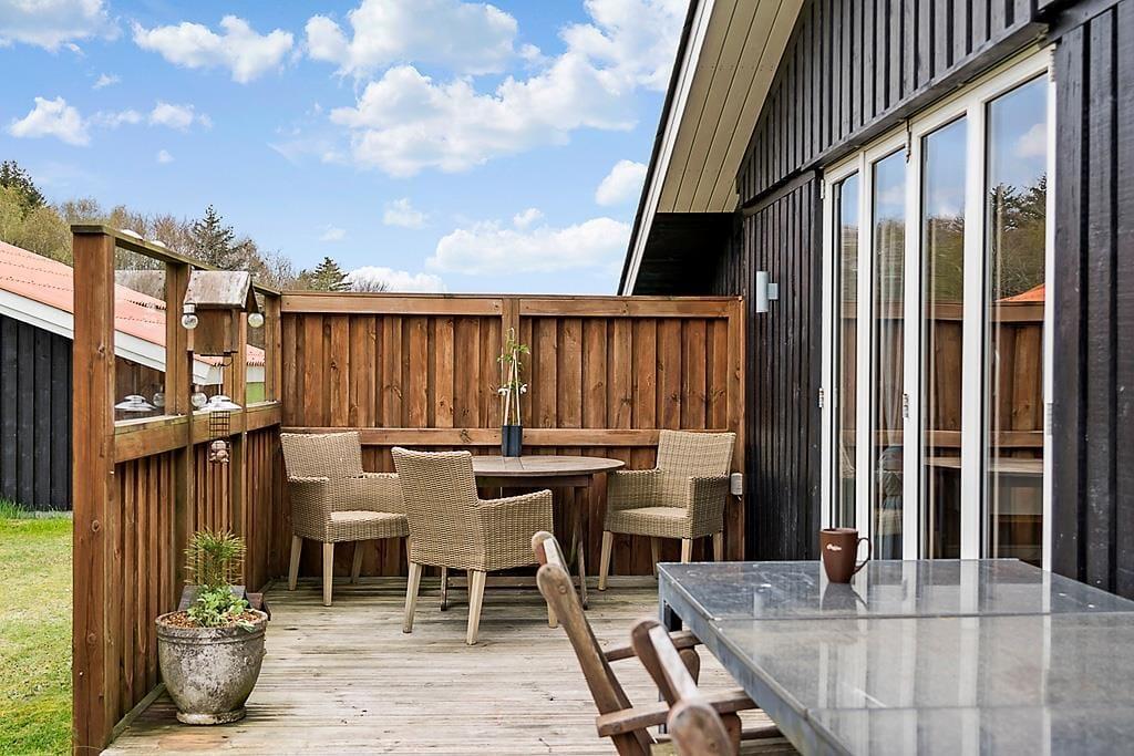 Sommerhusets store terrasse er et perfekt sted at tilbringe tid sammen med familie og venner. Her kan du sidde i solen og nyde den friske luft, eller trække dig tilbage til skyggen, hvis du foretrækker det. Den dejlige grund rundt om huset giver både plads til leg og afslapning, og det er let at finde en stille plet til at slappe af i. Om aftenen kan du tænde grillen og nyde et lækkert måltid udendørs, mens du ser solen gå ned. Den hyggelige udestue er et ekstra plus, når du ønsker at tilbringe tid udenfor på en lidt køligere dag.