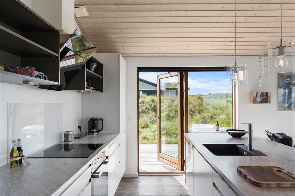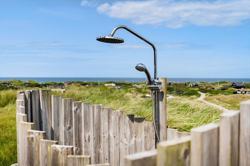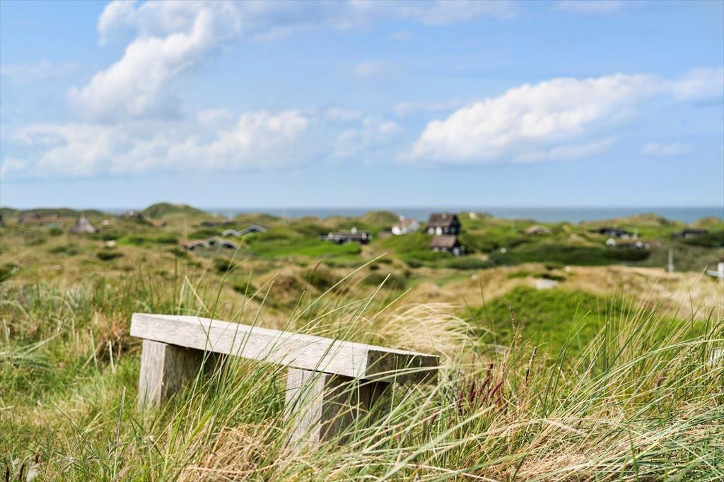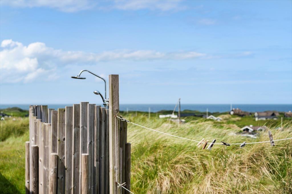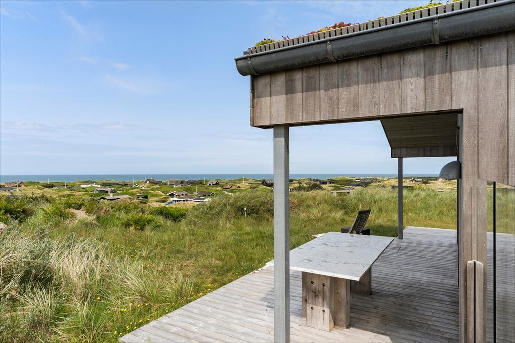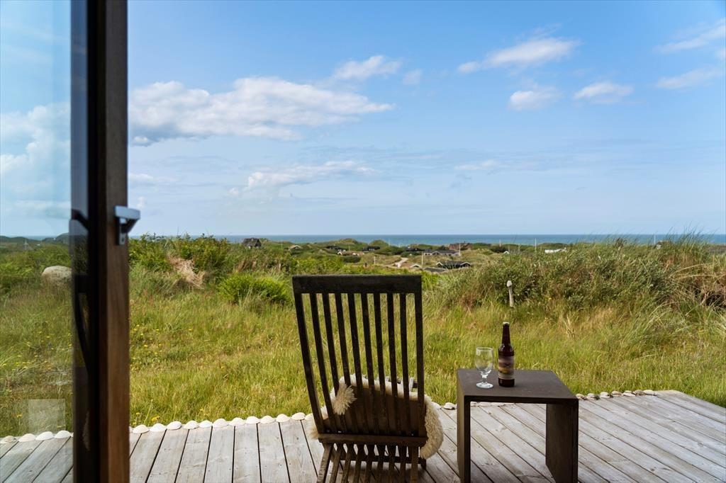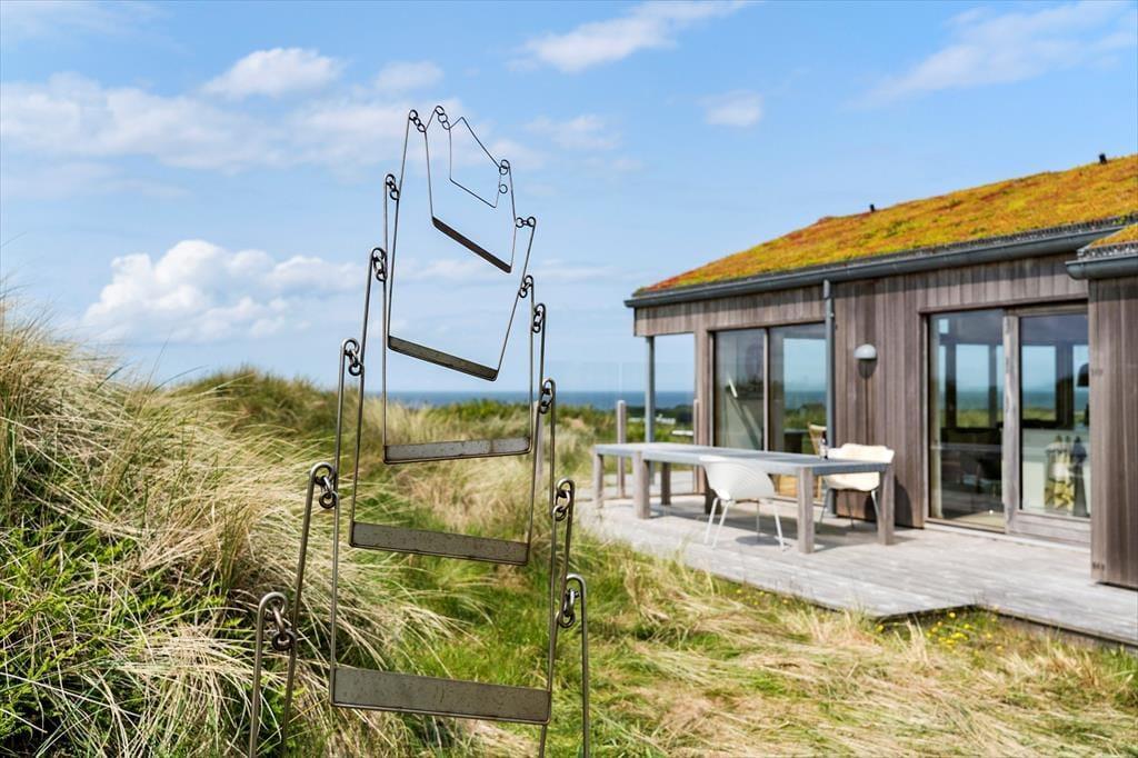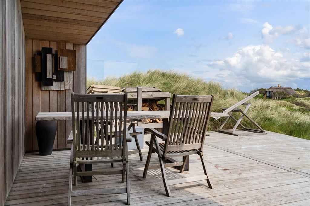 Om sommeren bliver udelivet næsten en naturlig forlængelse af huset, for fra både stuen og alrummet er der direkte udgang til terrassen, hvor du kan sidde med fødderne oppe og nyde den friske havluft. Terrassen mod vest indbyder til solbadning, hyggelige måltider under åben himmel og lange, rolige aftener med udsigt til solnedgangen over klitterne. Rundt om huset er der flere kroge med både læ og sol – og med en placering højt i landskabet får du en fornemmelse af at være helt tæt på himmel og hav. Tænd op i grillen, find tæpperne frem, og lad dagen gå på hæld i selskab med dem, du holder af.