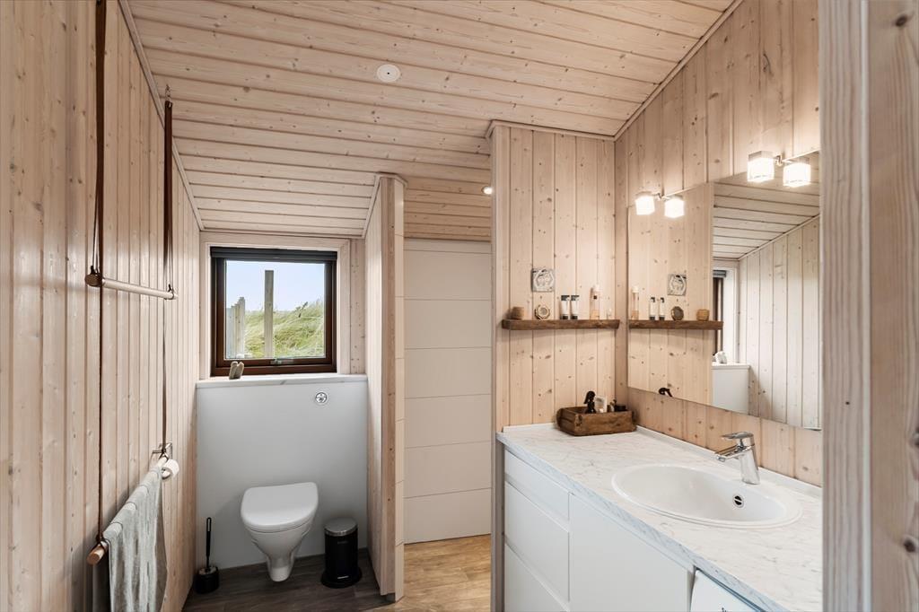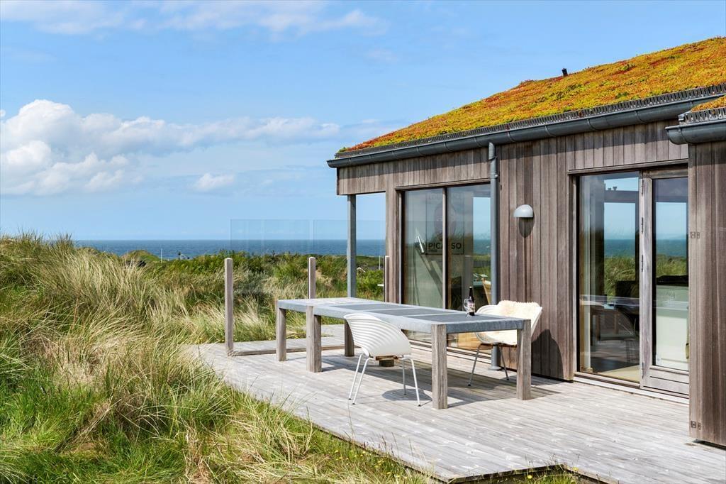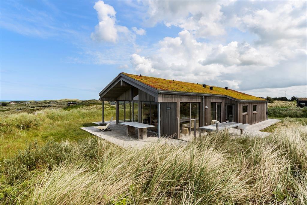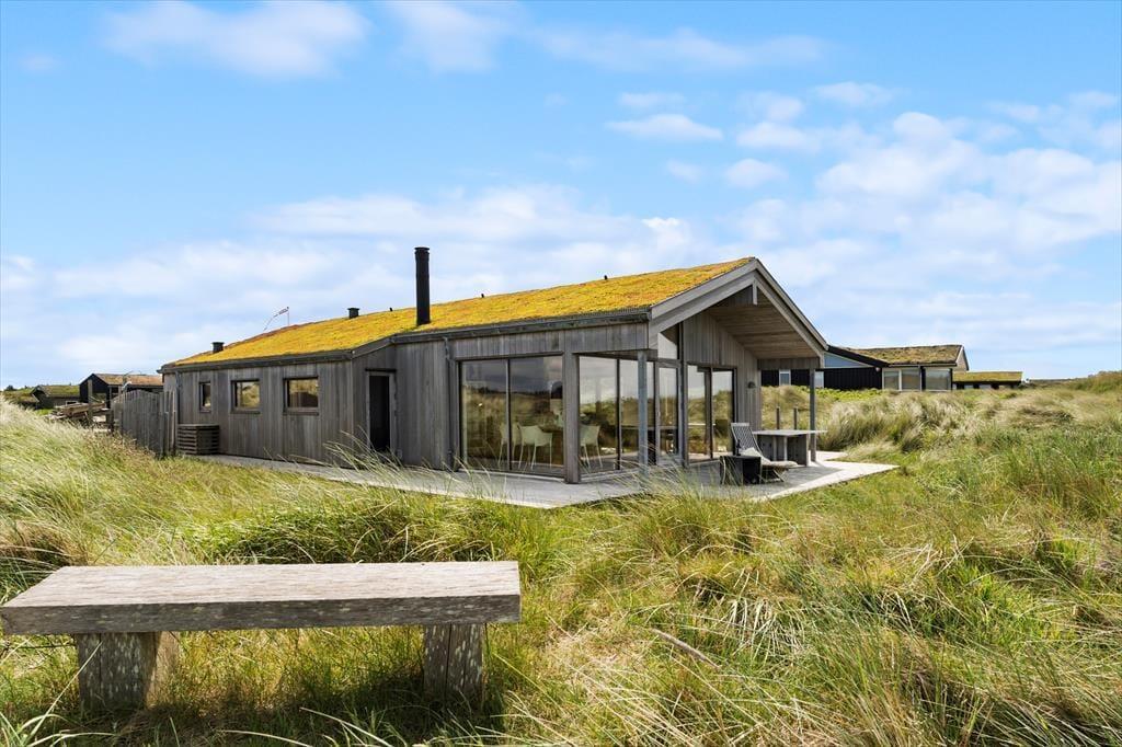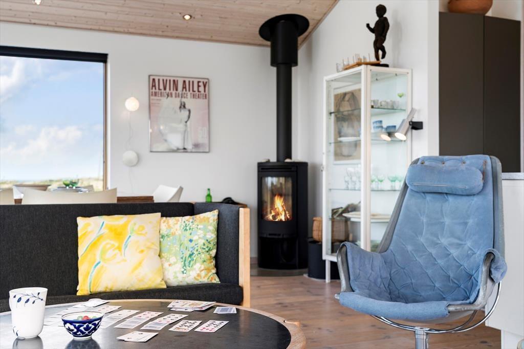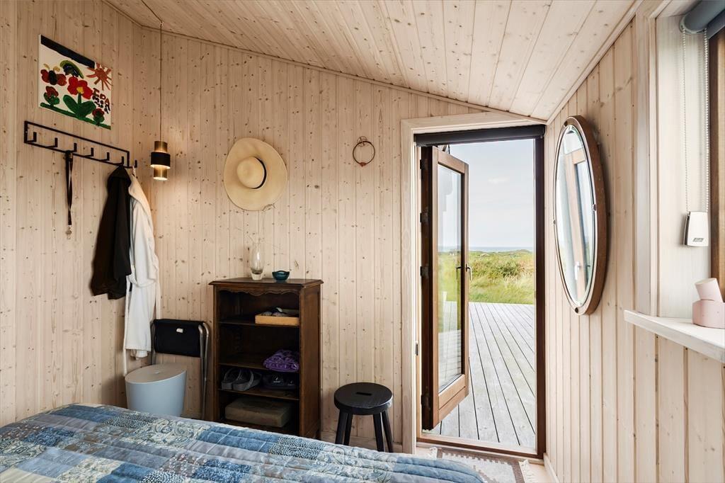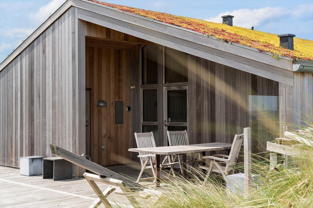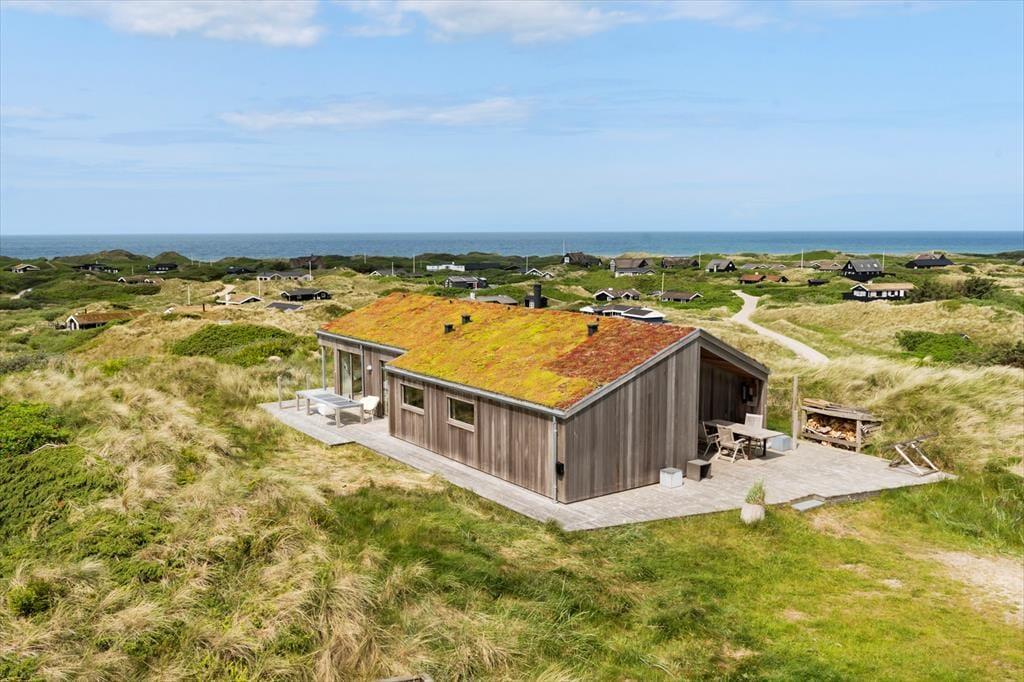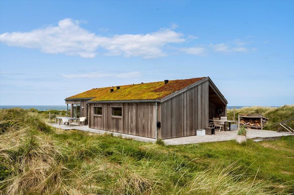 Om sommeren bliver udelivet næsten en naturlig forlængelse af huset, for fra både stuen og alrummet er der direkte udgang til terrassen, hvor du kan sidde med fødderne oppe og nyde den friske havluft. Terrassen mod vest indbyder til solbadning, hyggelige måltider under åben himmel og lange, rolige aftener med udsigt til solnedgangen over klitterne. Rundt om huset er der flere kroge med både læ og sol – og med en placering højt i landskabet får du en fornemmelse af at være helt tæt på himmel og hav. Tænd op i grillen, find tæpperne frem, og lad dagen gå på hæld i selskab med dem, du holder af.