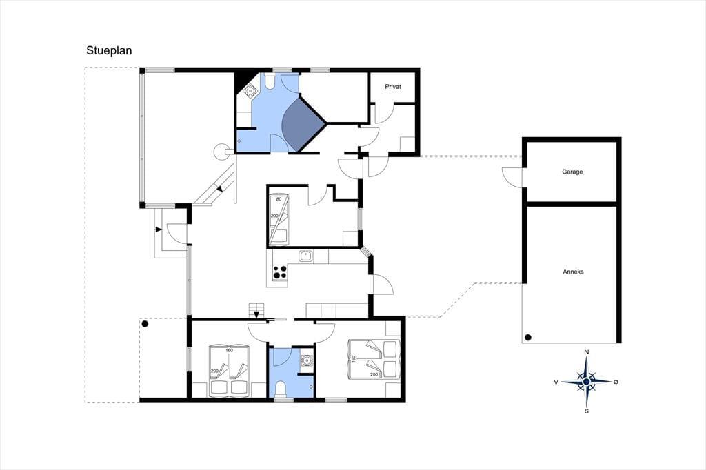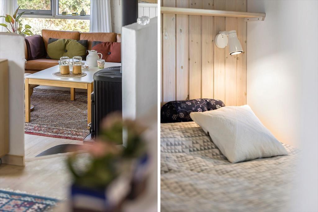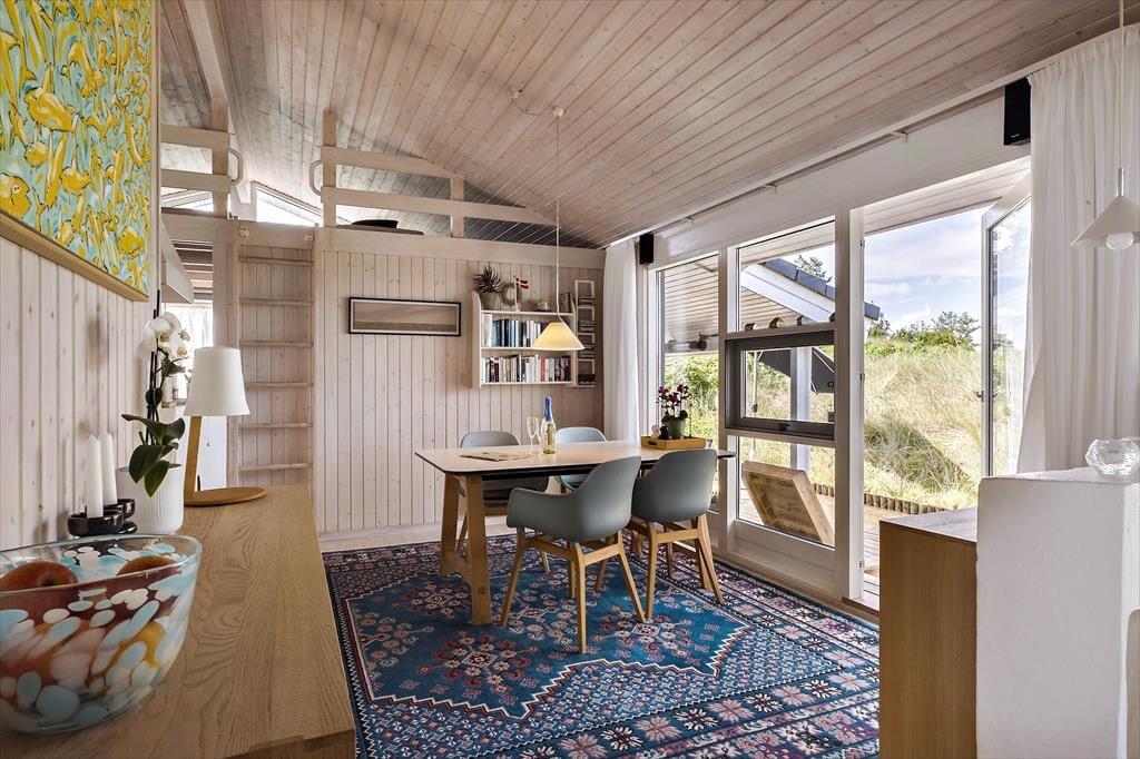 Indenfor møder du en lys og venlig indretning, hvor hyggen er i højsædet. Stuen er hjertet i huset, og her kan I samles om måltiderne, tænde op i brændeovnen på kølige dage eller bare slappe af med en god bog i sofaen. Det åbne køkken gør det nemt at være sammen, selv når der skal kokkereres, og du har et godt udgangspunkt for at nyde ferien i roligt tempo. Huset emmer af afslappet sommerhusstemning, der får skuldrene til at sænke sig med det samme, og det er oplagt at sætte sig til rette og nyde en langsom morgen med kaffe og hjemmebag.