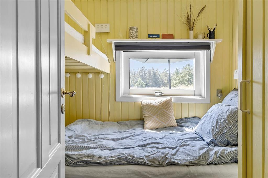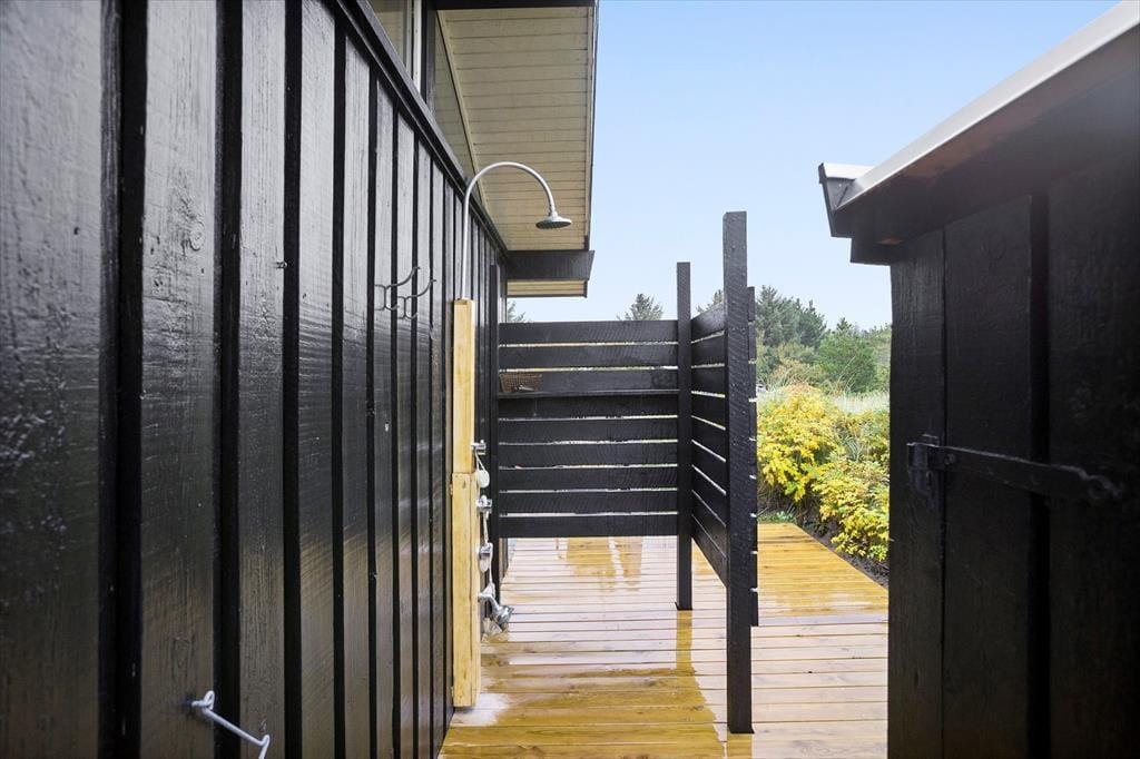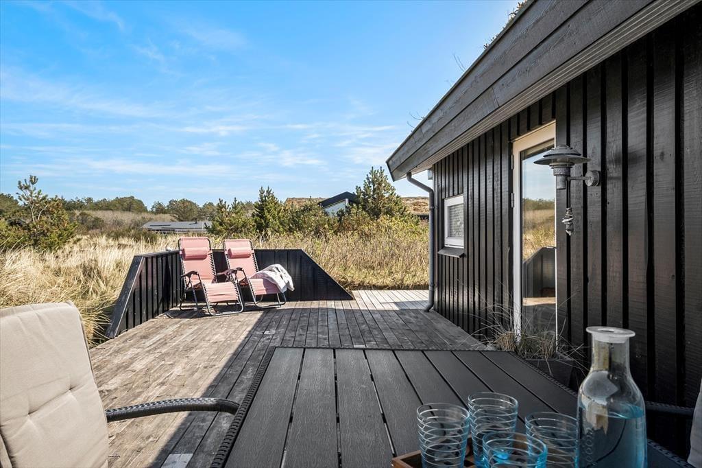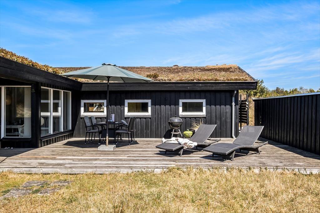 Når solen skinner, er der masser af muligheder for at nyde det fantastiske udendørsområde. Sommerhuset ligger på en dejlig naturgrund, som giver masser af plads til at udforske eller bare nyde naturen. En praktisk udebruser giver jer mulighed for at skylle sandet af efter en tur på stranden eller tage et forfriskende bad i den friske luft. Fra husets terrasse kan du tage et hvil i solen eller finde skygge under den overdækkede del af terrassen. Uanset tidspunkt på dagen er det nemt at finde det perfekte sted at slappe af og lade tankerne flyve.