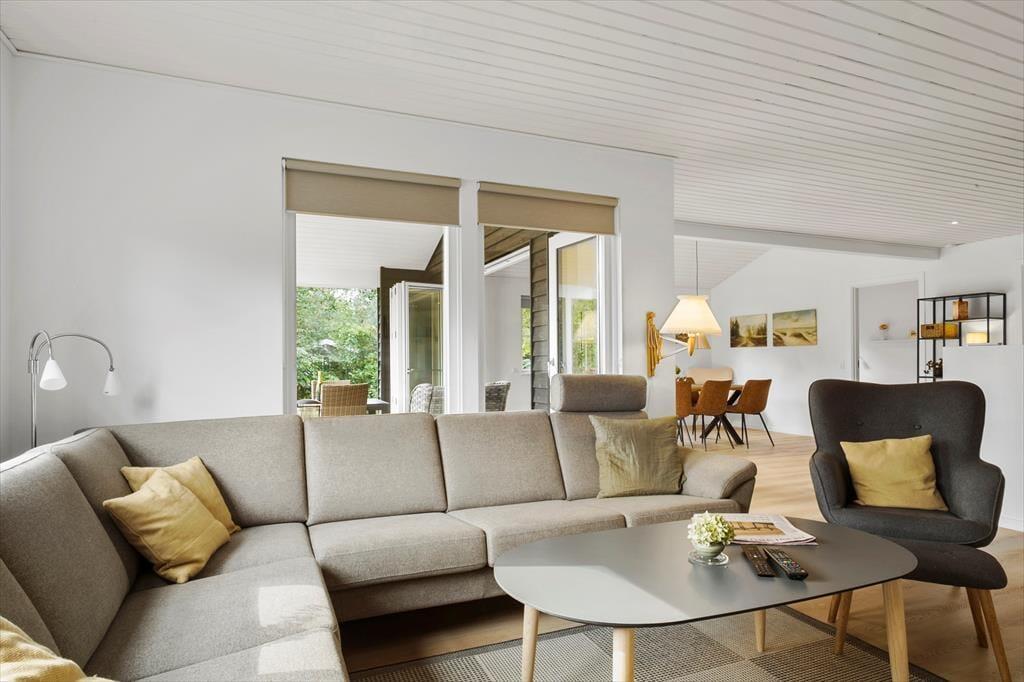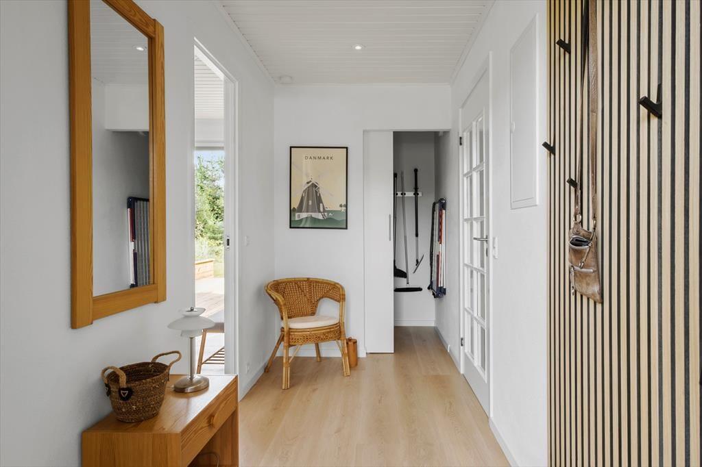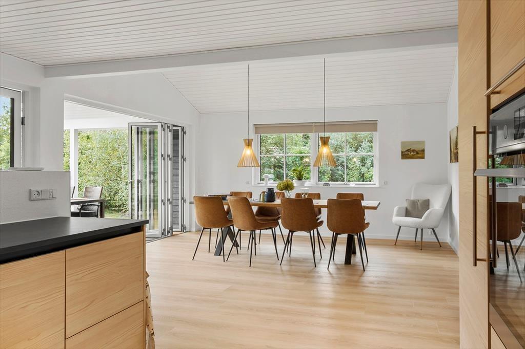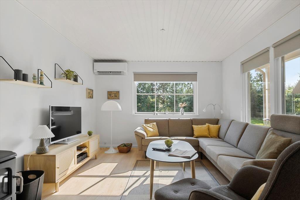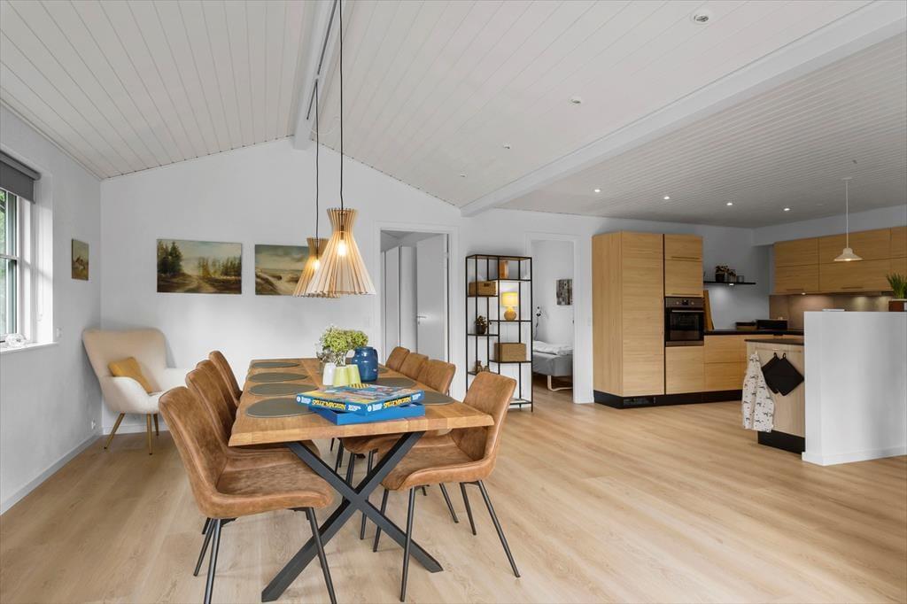Sommerhuset præsenterer sig med en lys og venlig atmosfære, der straks får dig til at føle dig hjemme. De renoverede rum er indrettet med fokus på hygge og funktionalitet, og den åbne stue indbyder til samvær, hvad enten det er med brætspil, film på fjernsynet eller en god bog i sofaen, mens brændeovnen knitrer i baggrunden. Køkkenet ligger i direkte forbindelse med opholdsrummet, så madlavningen bliver en del af fællesskabet – og her er rig mulighed for at nyde måltiderne i ro og mag. De hyggelige soveværelser giver plads til både børn og voksne, og huset rummer alt det, du behøver for en afslappet ferie.