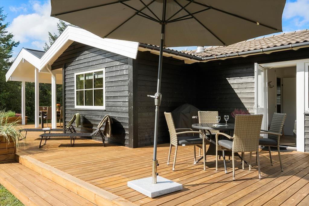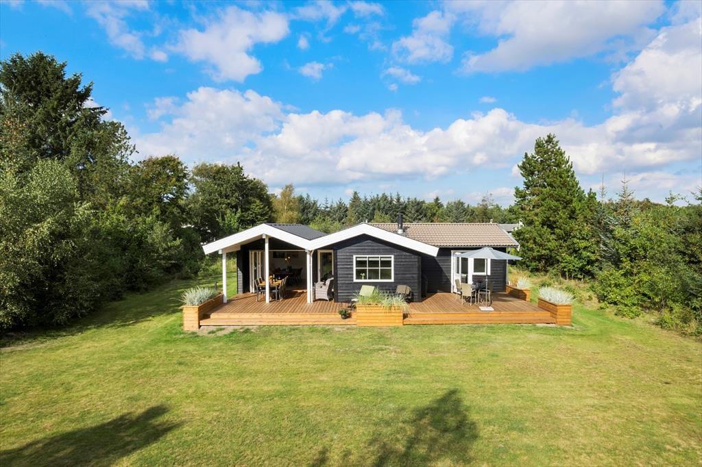 I 2025 er sommerhuset blevet opgraderet med en flot ny terrasse, der giver dig et ideelt sted at nyde solen og ferielivet. Her kan du starte dagen med en frisk kop kaffe, mens fuglene kvidrer i træerne omkring dig, og senere på dagen kan terrassen danne rammen om både grillmiddage og lange sommeraftener under åben himmel. Den grønne grund indbyder til leg og afslapning, og med naturen helt tæt på er det let at finde ro og fordybelse i de smukke omgivelser.
