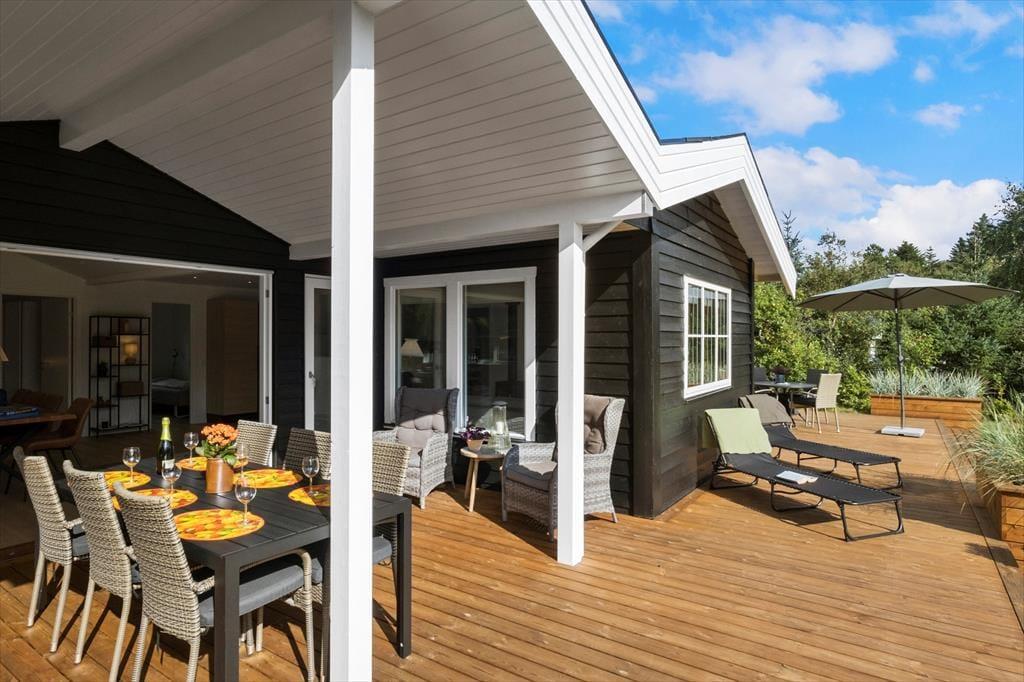 Drømmer du om en ferie, hvor du kan koble helt af i fredelige rammer, men samtidig have kort afstand til både Vesterhavet og Saltums charmerende omgivelser? Så er dette skønne sommerhus på Jydske Rev 5 et oplagt valg. Huset er renoveret i 2024 og fremstår lyst, indbydende og velholdt – og med den lækre nye terrasse fra 2025 er her skabt de perfekte rammer for hyggelige feriedage, uanset om du rejser som par eller med hele familien.