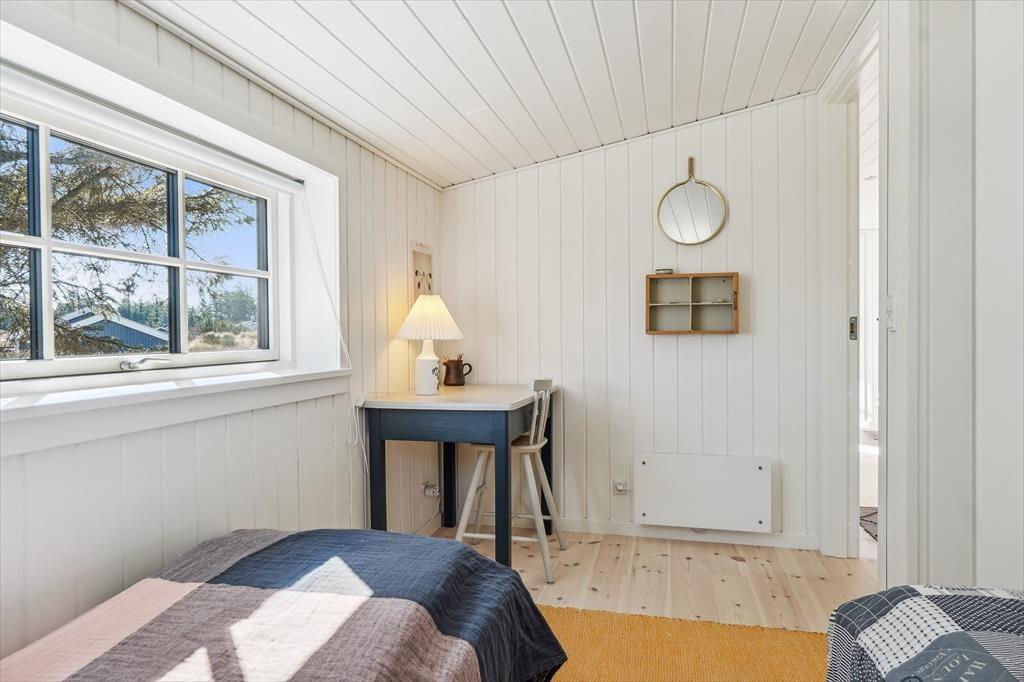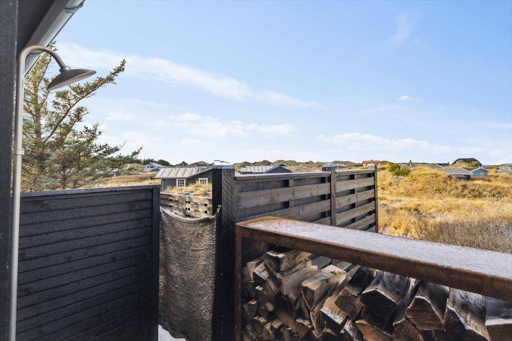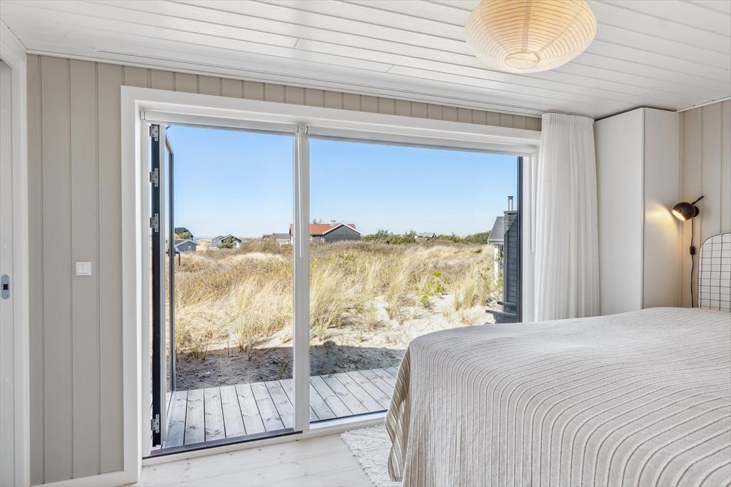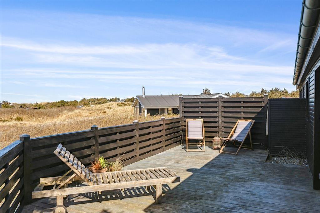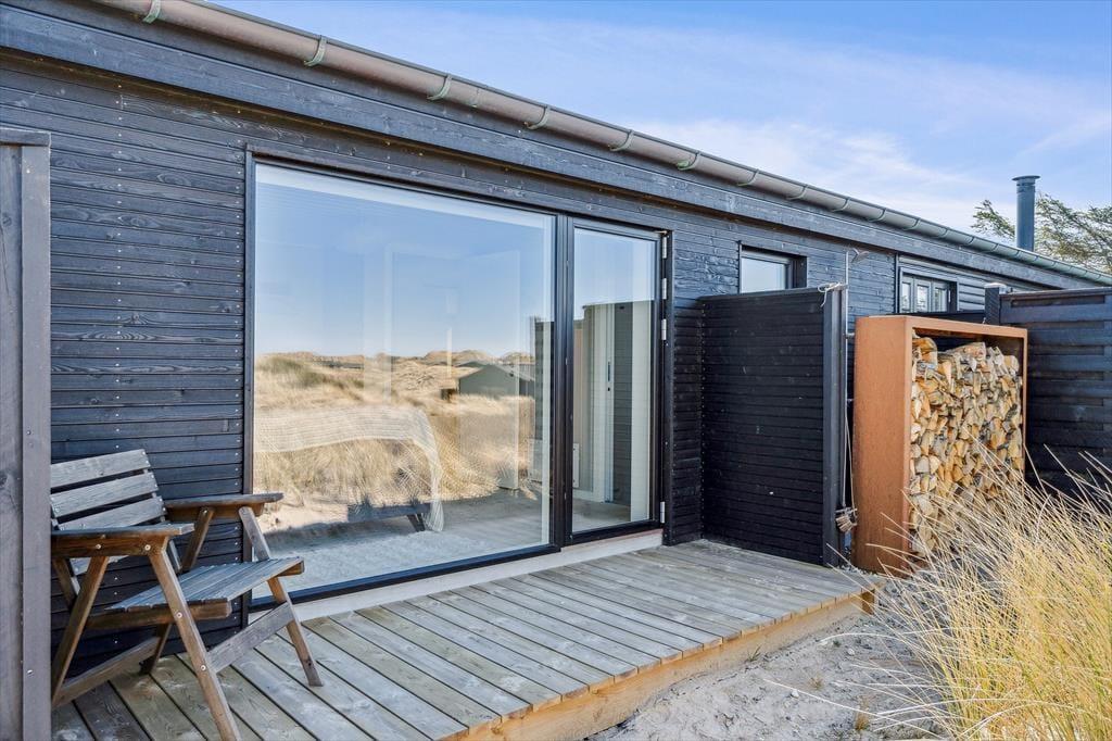 Terrassen er uden tvivl et af sommerhusets højdepunkter. Her kan du starte dagen med en friskbrygget kop kaffe, mens du lader blikket glide ud over Vesterhavet, der ligger blot en kort gåtur væk. Når solen står højt på himlen, er terrassen et dejligt sted at slappe af i havemøblerne, og om aftenen kan du tænde grillen og nyde en middag under åben himmel, mens bølgernes brusen sætter stemningen. Grunden omkring huset er enkel og let at holde, så du kan koncentrere dig om det vigtigste: at nyde roen, udsigten og ferien i fulde drag.