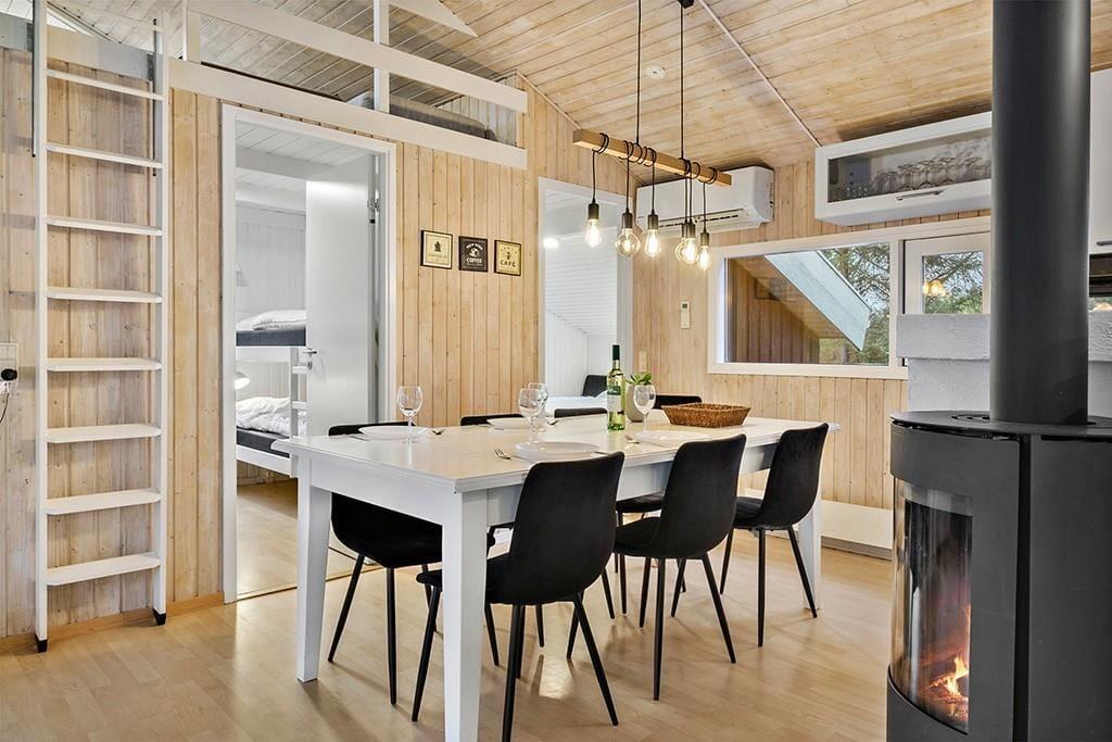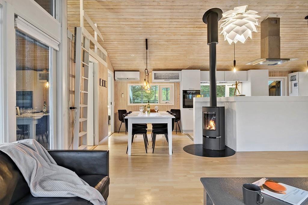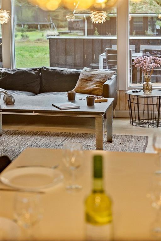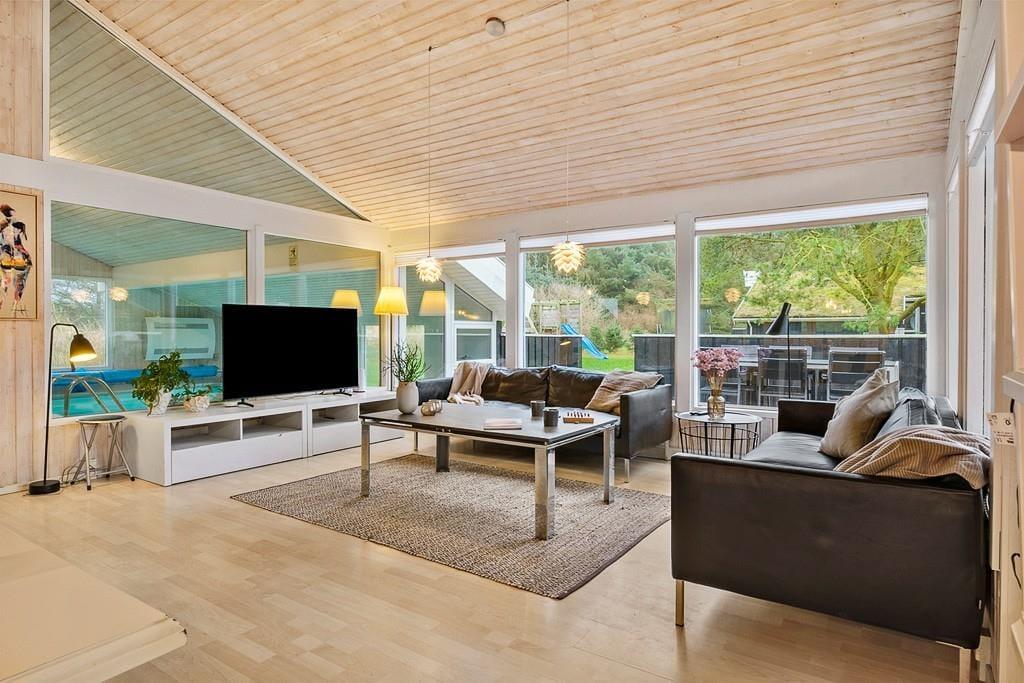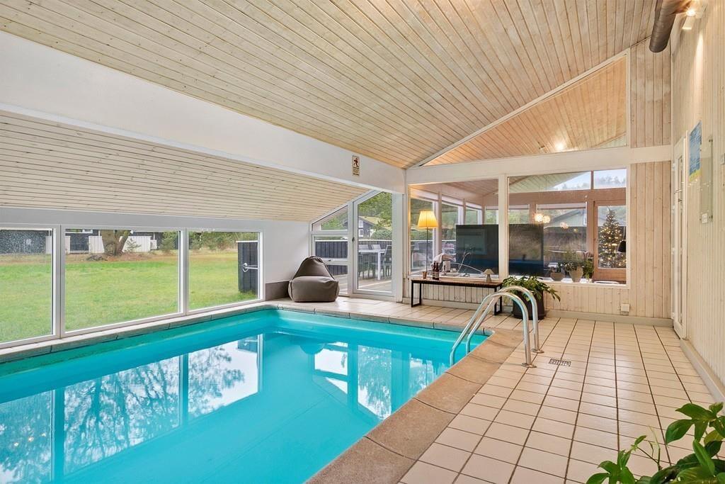 Når du træder ind i sommerhuset, mærker du straks den lyse og venlige atmosfære, som indbyder til ferieafslapning fra første øjeblik. Huset er rummeligt og indrettet med fokus på både komfort og samvær, så der er plads til, at hele selskabet kan hygge sig sammen – hvad enten det er omkring spisebordet, i sofahjørnet eller i poolafdelingen. Den indendørs swimmingpool bliver hurtigt et naturligt samlingspunkt, hvor både børn og voksne kan muntre sig, uanset vejret udenfor. Efter en svømmetur kan I slappe af i opholdsrummet med et spil kort eller en god film, mens duften af aftensmad spreder sig fra køkkenet. Stemningen er afslappet og hyggelig, præcis som en ferie i et nordjysk sommerhus skal være.