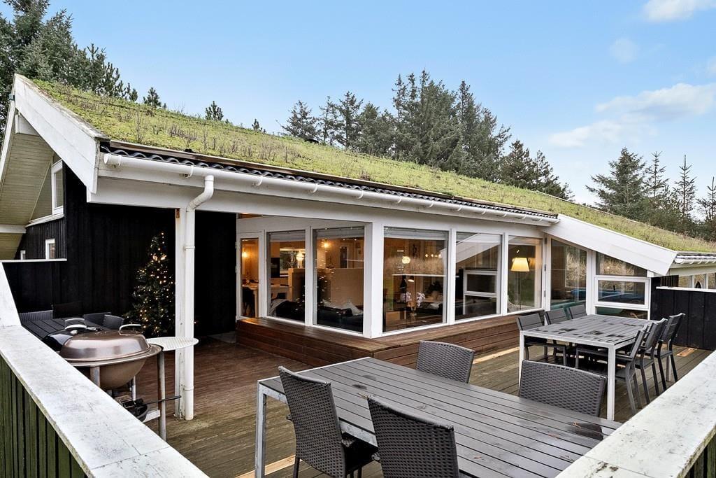 Udenfor venter et stort terrassemiljø, der næsten omkranser hele huset – perfekt til solbadning, afslapning og hyggelige grillaftener under åben himmel. Her kan I altid finde en god krog i solen eller et skyggefuldt hjørne, alt efter humør og tidspunkt på dagen. Morgenkaffen smager ekstra godt på terrassen, mens I lytter til fuglene og mærker den friske havluft, og om aftenen kan I nyde dagens sidste solstråler med et glas vin og gode feriesamtaler. Den store naturgrund giver masser af plads til leg og boldspil, og hunden kan frit boltre sig i de rolige omgivelser. Her er kort sagt tænkt på både afslapning og aktivitet – ude som inde.
