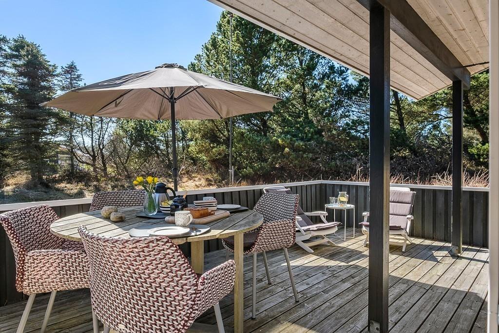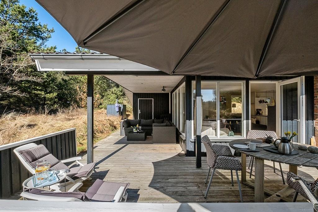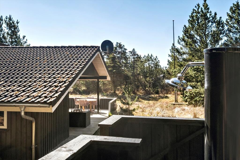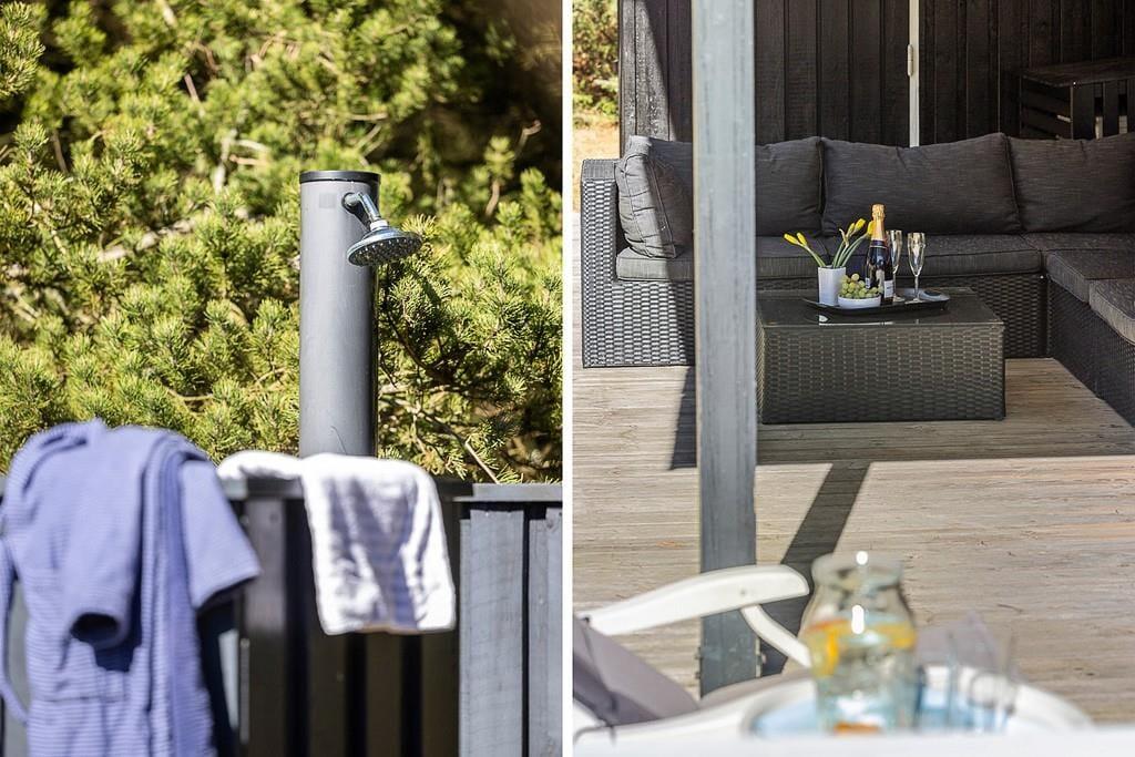 Det udendørs liv bliver endnu mere behageligt med den store terrasse, hvor du kan nyde varme dage i solen. Om aftenen kan terrassen varmes op, så du kan sidde ude, selv når det bliver køligere. Den private udendørs bruser giver en dejlig mulighed for at skylle sand og saltvand af, efter en tur på stranden. Den lukkede have og naturgrund sikrer, at du har masser af privatliv, mens du samtidig kan nyde den naturskønne udsigt. Den rolige beliggenhed ved enden af vejen betyder, at du kan slappe af uden forstyrrelser og virkelig få hvilet ud i de smukke omgivelser.