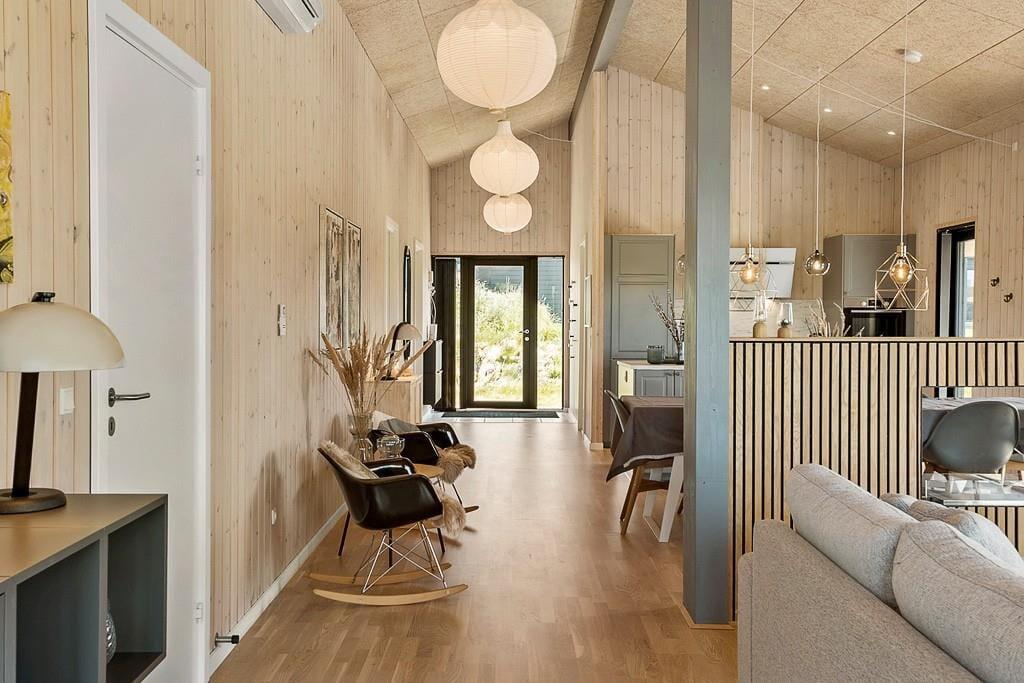 Som du træder ind i dette lyse og indbydende sommerhus, vil du straks mærke den varme og rolige atmosfære, der breder sig. De store vinduer og det åbne køkken-alrum giver masser af lys og skaber en dejlig, indbydende stemning, som du kan mærke med det samme. Huset er indrettet med smagfulde møbler og detaljer, der giver en følelse af luksus, men stadig med en afslappet feriefornemmelse. Om vinteren er det rart at sætte sig i opholdsområdet og nyde varmen og den hyggelige stemning, mens du slapper af. Når solen skinner, kan du nyde de rolige omgivelser gennem de store vinduer og lytte til fuglesangen i haven. Huset har gode sovepladser og er perfekt til en afslappet ferie med både familie og venner.