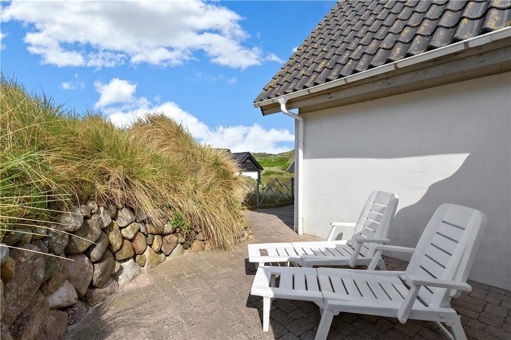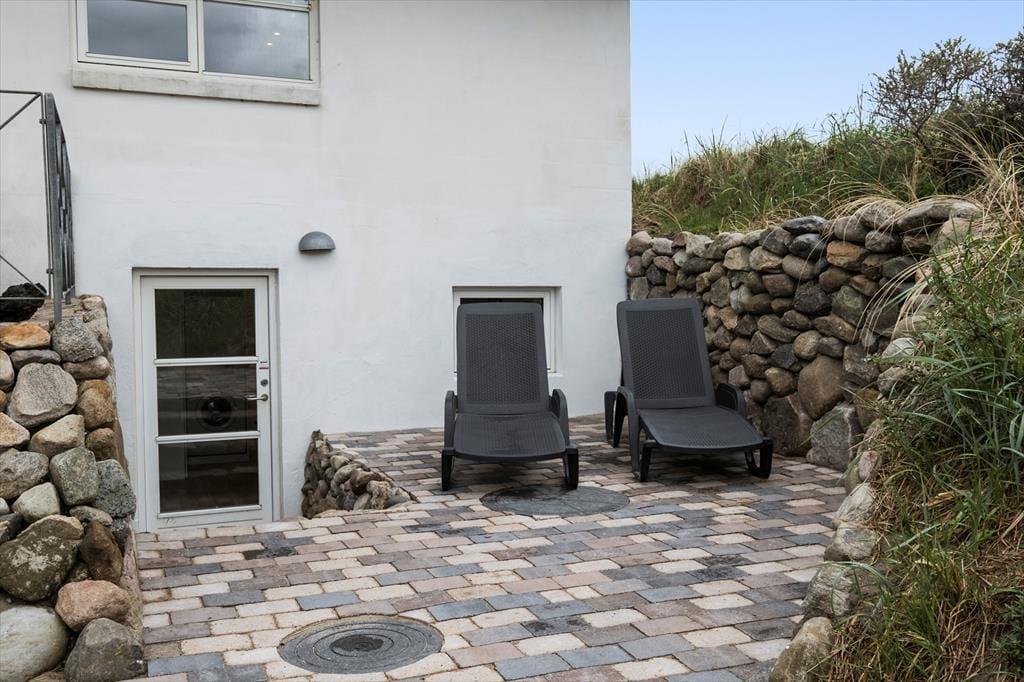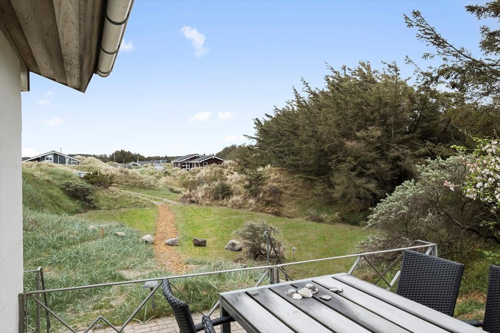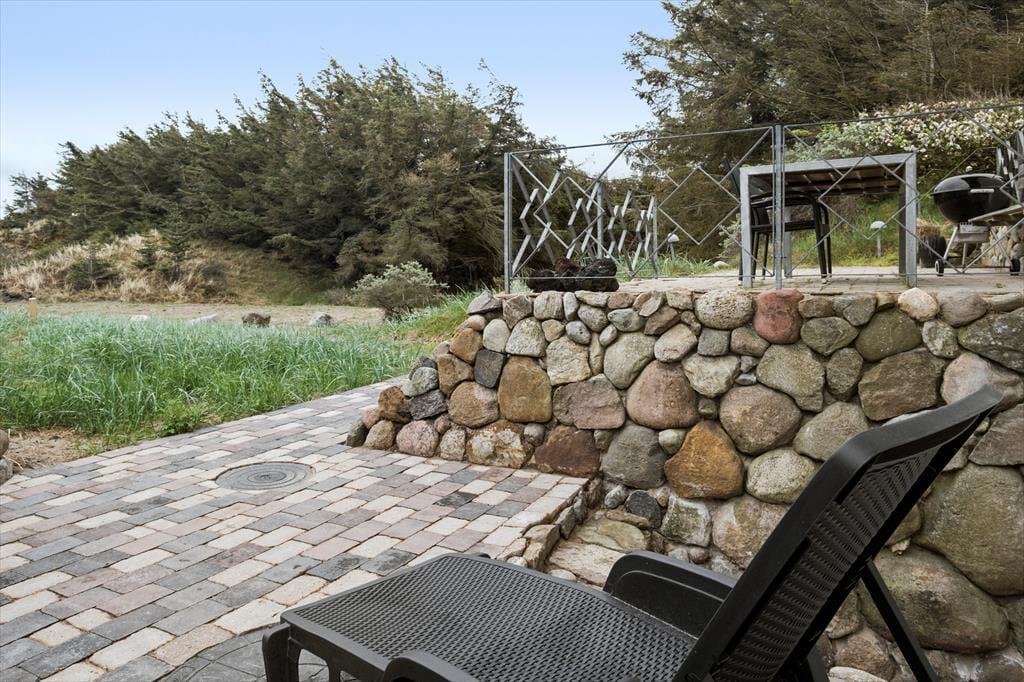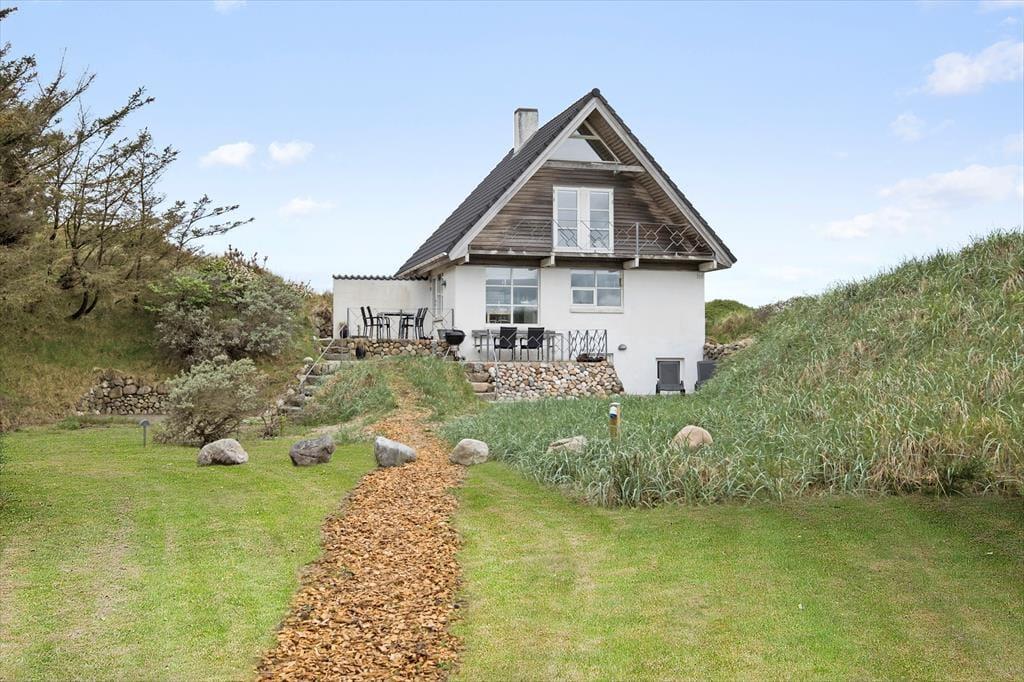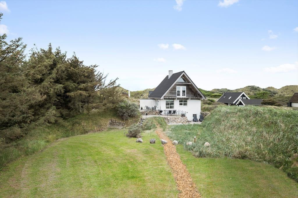 Sommerhuset ligger på en 6700 m2 stor klitgrund, der har et fantastisk dyreliv året rundt. Som en praktisk forbedring er en del af grunden blevet mere plan, hvilket gør det nemmere at parkere og komme til huset. Der er også en græsplæne til leg og boldspil, mens resten af grunden er herligt kuperet med vilter beplantning. En sti fører op til en fin udsigtsplads, og omkring sommerhuset er der flere solrige terrasse med havemøbler af god kvalitet.