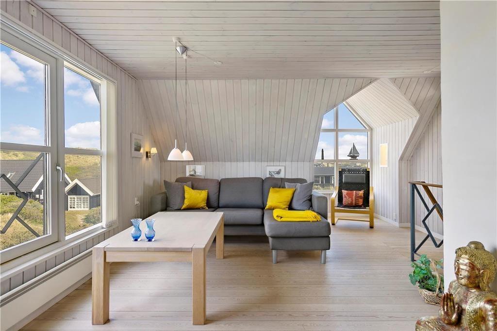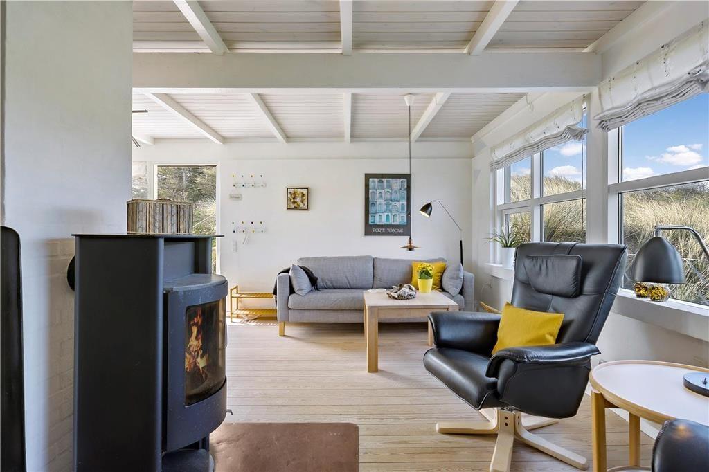 I får en formfuldendt ramme om ferielivet på Revlingevej 44, for dette sommerhus byder på afslappende hyggekroge, flotte udsigtspladser og sågar en lækker spaafdeling. Og så ligger husset tilmed midt i Saltums betagende klitlandskab bare 100 meter fra Vesterhavet.