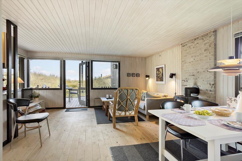 Sommerhuset ligger i det rolige og naturskønne område Saltum, tæt på både hav og skov. En kort gåtur fører dig til de brede sandstrande ved Vesterhavet, hvor du kan tage en forfriskende dukkert eller bygge sandslotte med børnene. Blokhus Klitplantage ligger også inden for rækkevidde, og her kan du tage på smukke vandreture og cykelture i det kuperede terræn. Der er heller ikke langt til Blokhus by, hvor du finder et udvalg af butikker, caféer og restauranter, der kan forkæle dine smagsløg. Og hvis familien trænger til lidt ekstra sjov, er Fårup Sommerland en oplagt destination med forlystelser og aktiviteter for både store og små.