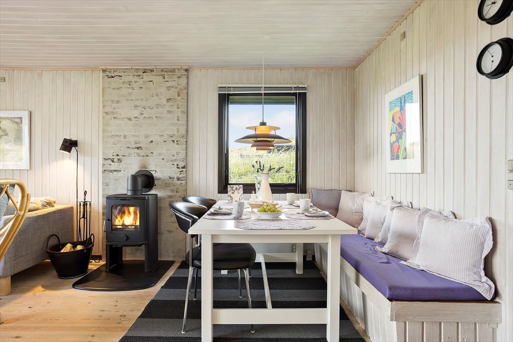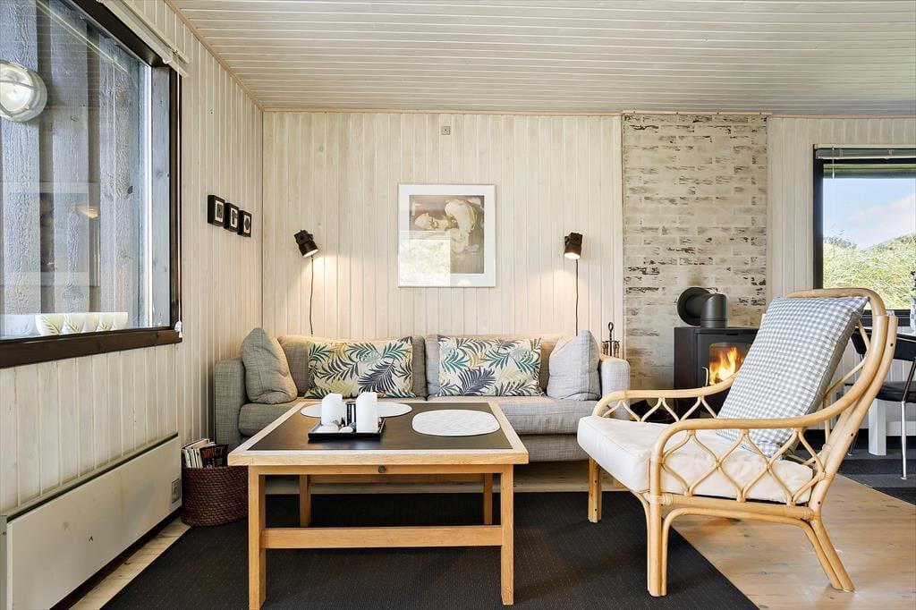 Når du træder ind i sommerhuset, mødes du af en indbydende og varm atmosfære, der straks får dig til at føle dig hjemme. Den hyggelige stue med brændeovn indbyder til afslapning og hyggestunder med familien. De store vinduer i opholdsrummet lukker masser af lys ind og giver en smuk udsigt til det omkringliggende landskab. Køkkenet er åbent og funktionelt, hvilket gør det nemt at tilberede lækre måltider til hele familien. Uanset om du nyder en stille morgenkaffe eller en stor familiemiddag, vil køkkenets placering gøre det til et naturligt samlingspunkt. De tre soveværelser er indrettet med komfort og hygge for øje, så alle kan vågne op veludhvilede og klar til en ny dag med oplevelser.