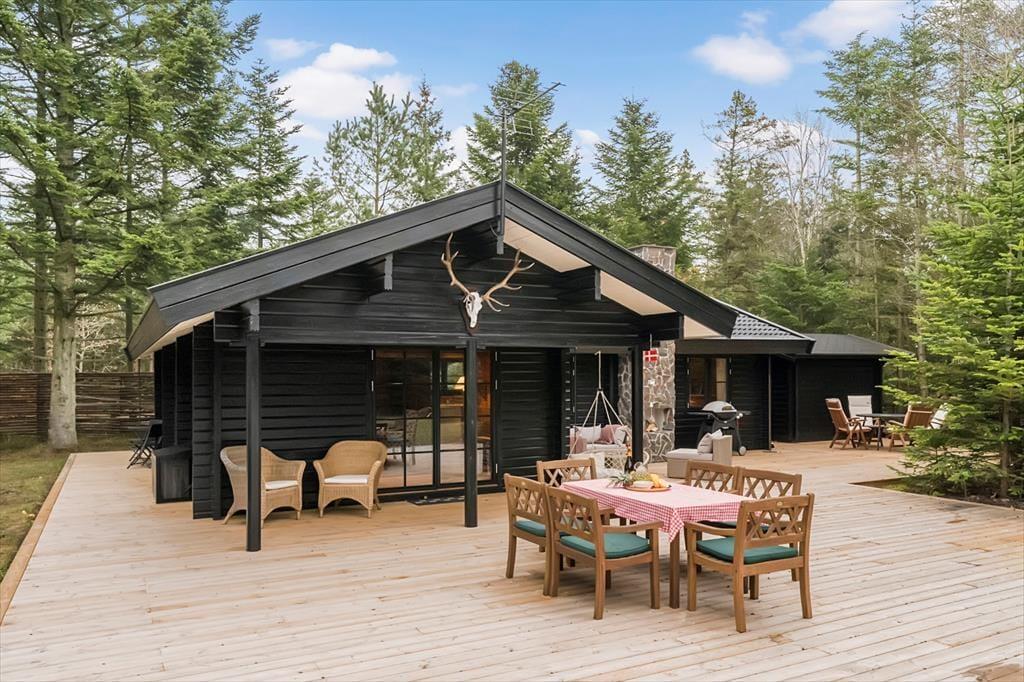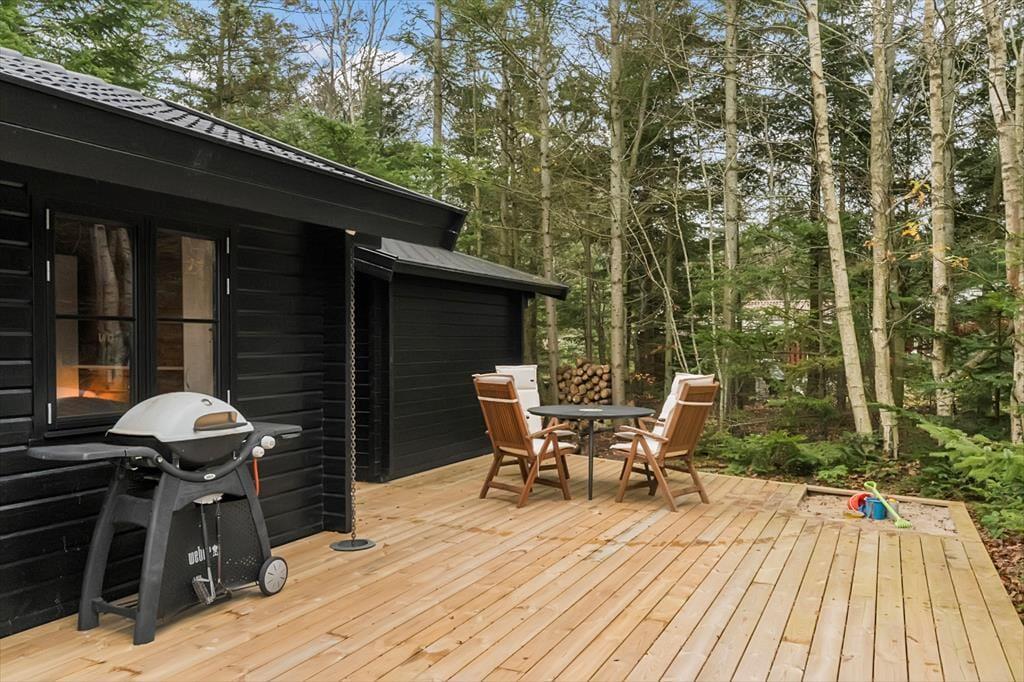 Terrassen er sommerhusets hjerte om sommeren – her kan I nyde dagens første kop kaffe under åben himmel og tilbringe afslappende timer i solen. Terrassen er både stor og delvist overdækket, så I altid kan finde skygge eller ly, uanset hvordan vejret arter sig. Om aftenen kan I tænde op i grillen og sætte jer til rette, mens I nyder maden og hinandens selskab. Den store terrasse indbyder til lange dage under åben himmel, og børnene kan lege frit omkring på det lukkede terrasseområde.