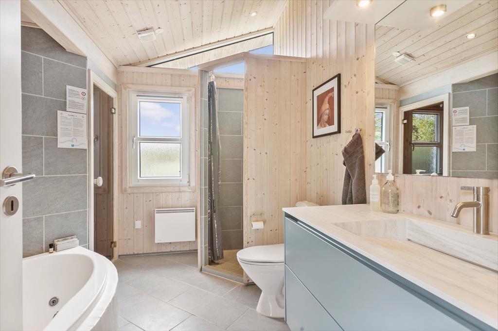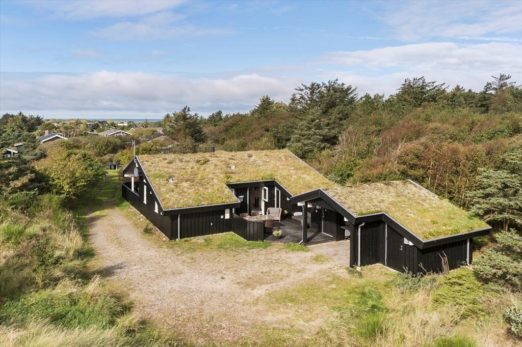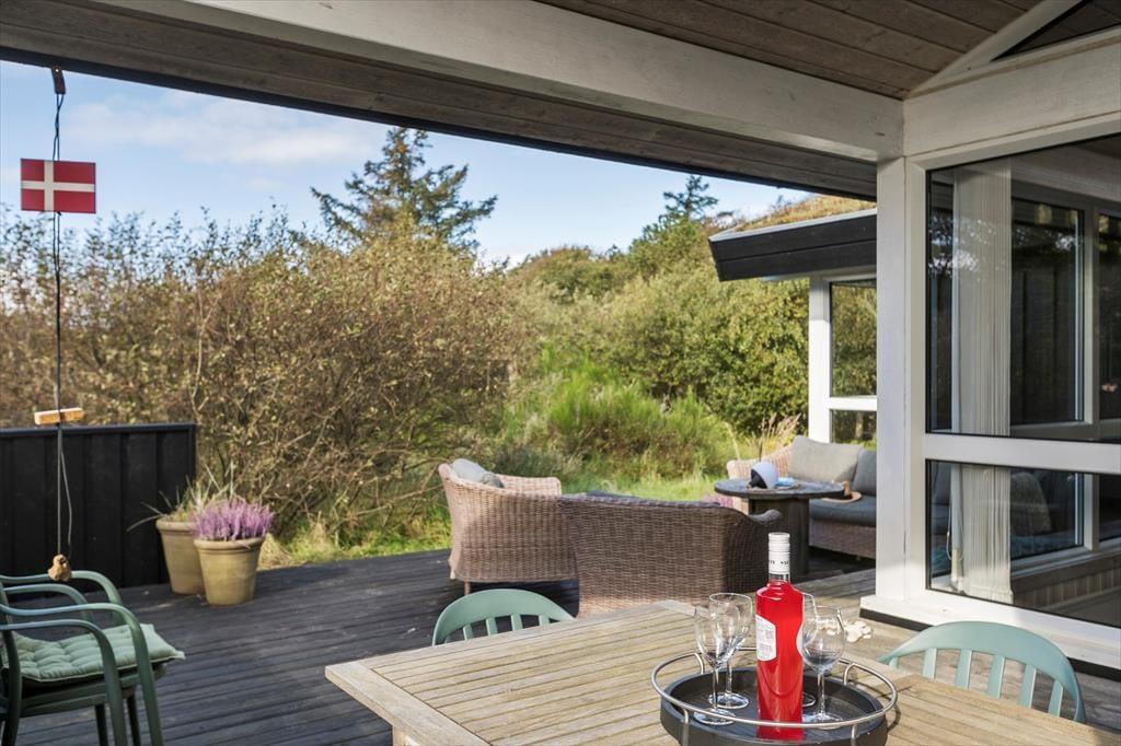 Udenfor venter den skønne terrasse, som indbyder til solrige dage med afslapning og hygge. Her kan du nyde morgenkaffen med udsigt til 'Lille Norge', som nærmest strækker sig helt op til husets baghave. Terrassemiljøet giver rig mulighed for at finde en god solplads, og med den korte gåafstand til stranden kan du nemt skifte mellem afslapning ved huset og forfriskende dukkerter i Vesterhavet. Efter en lang dag ved stranden kan du tænde op i grillen og nyde en dejlig middag under åben himmel, mens solnedgangen farver himlen.