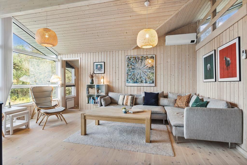 Sommerhusets indretning er både lys og venlig, og der er kælet for detaljerne i de rummelige opholdsrum. Stuen og det åbne køkken er det naturlige samlingspunkt, hvor du kan nyde måltiderne eller slappe af med en god bog ved brændeovnen. Huset har plads til seks personer fordelt på fire hyggelige soveværelser, som alle indbyder til en god nats søvn efter en dag fyldt med oplevelser. Køkkenet er godt udstyret, så du nemt kan tilberede alt fra morgenmad til middag i de hjemlige omgivelser. Derudover giver store vinduespartier dig en flot udsigt til de naturskønne omgivelser.
