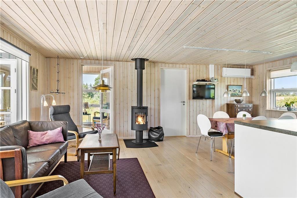 Dette sommerhus er godt udnyttet og vil danne rammen om nogle perfekte dage for dem, som ønsker en afslappende og rolig ferie i hyggelige omgivelser. Sommerhuset er flot vedligeholdt og har inventar og møbler i god kvalitet. Her er køkken, stue, badeværelse og3 værelser med gode senge. I stuen står en stor og flot brændeovn, og med ild i den, en god bog og en varm kop kaffe, kan man næsten ikke ønske mere. Sommerhuset er godt udstyret med moderne faciliteter som opvaskemaskine, vaskemakine og tørretumbler, og medbringer man pc eller tablet hjemmefra kan man logge på det trådløse internet og slappe af med yndlingsserien eller tjekke de seneste nyheder. både børn og voksne vil få nogle skønne og uforglemmelige dage i disse dejlige rammer.