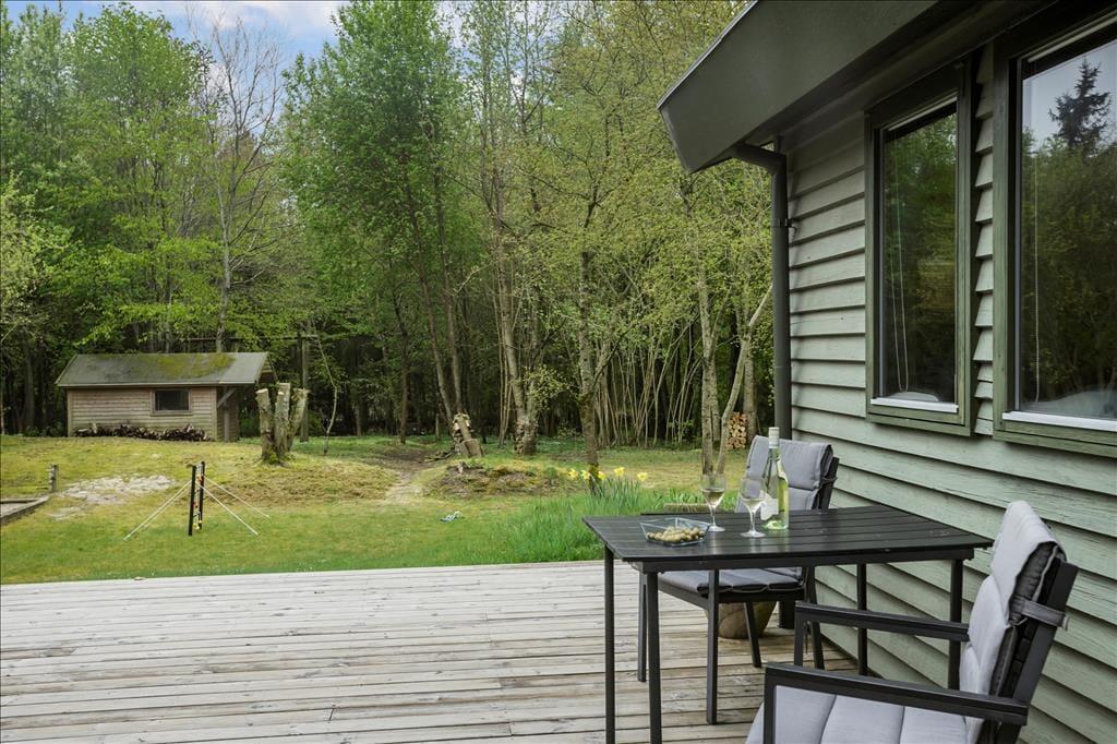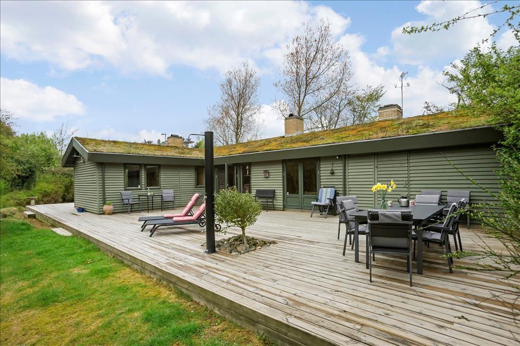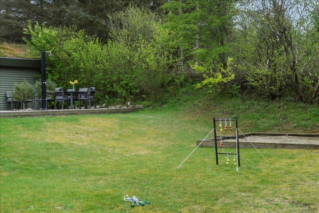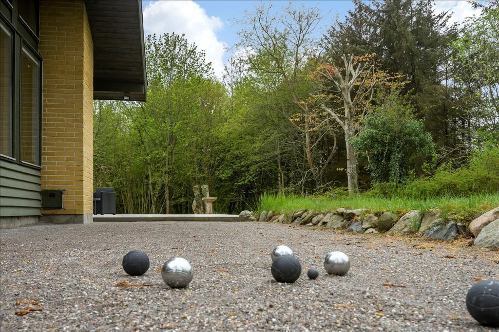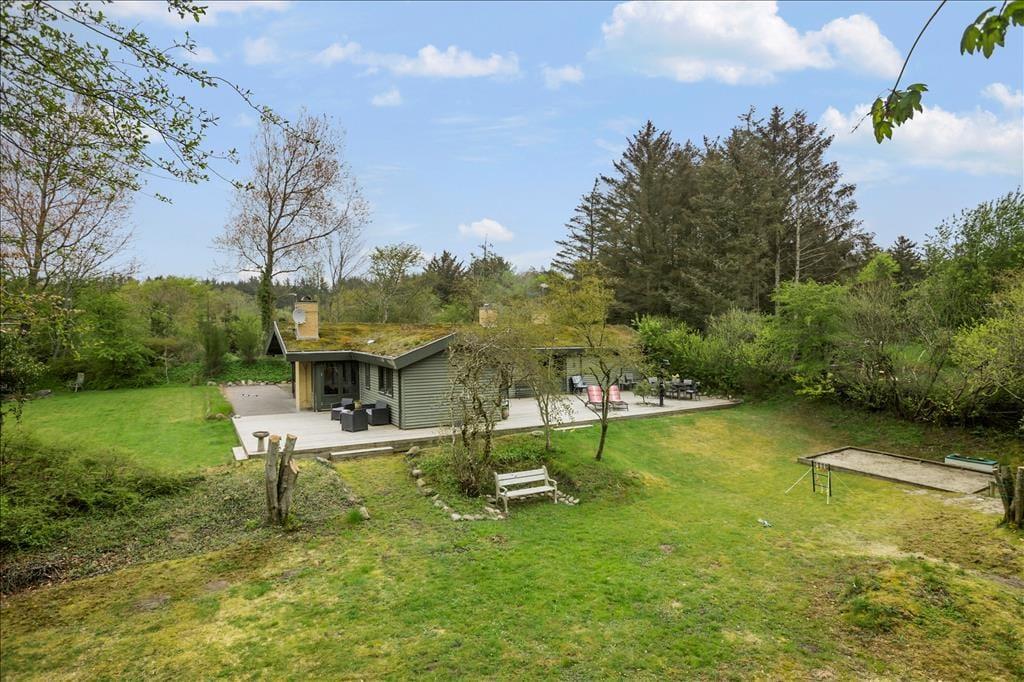 På den kæmpestore og indhegnede grund kan man virkelig nyde den danske sommer på bedste vis. Med i alt 130m2 terrasser mod syd og vest og mange charmerende kroge, er der mulighed for at slappe af, solbade og tanke ny energi. Til børnene er der masser af aktiviteter: gynger, sandkasse, legehus og flere plæner til boldspil og fangeleg. Voksne og børn får med garanti en uforglemmelig ferie i disse smukke og herlige omgivelser. Grunden på de 5000 m2 er et mekka for både børn og voksne og kan rolig betegnes som eget park anlæg.