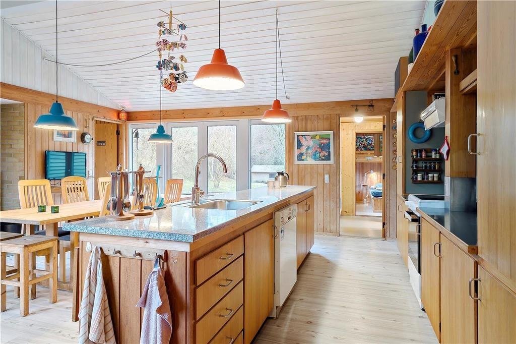 Huset er tegnet af en arkitekt, og man mærker, at der er lagt vægt på rummelighed og funktionalitet i processen. Der er således 4 soverum og to badeværelser, begge med bruser, og dagligdagen kan sagtens fungere med flere familier sammen. Det store køkken har alle tænkelige og moderne hjælpemidler og hænger sammen med spisepladsen, hvor man kan samles til måltiderne eller tage brætspillene frem. Desuden også brændeovn og tv her. I pejsestuen er endnu et tv og en åben pejs, her kan man sidde og lytte til træets knitren i varmen, mens man nyder udsigten over den store og parklignende grund. Endelig er her frit internet (WI-FI) og en wii-spillekonsol med tilhørende sportsspil.