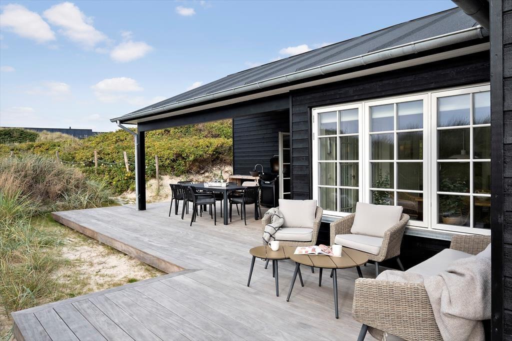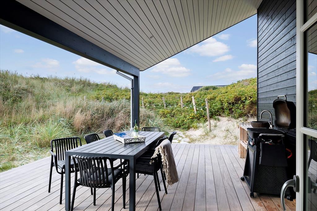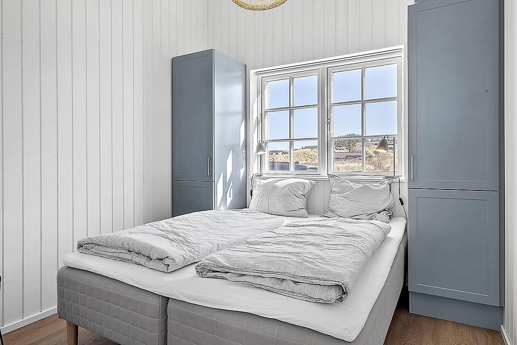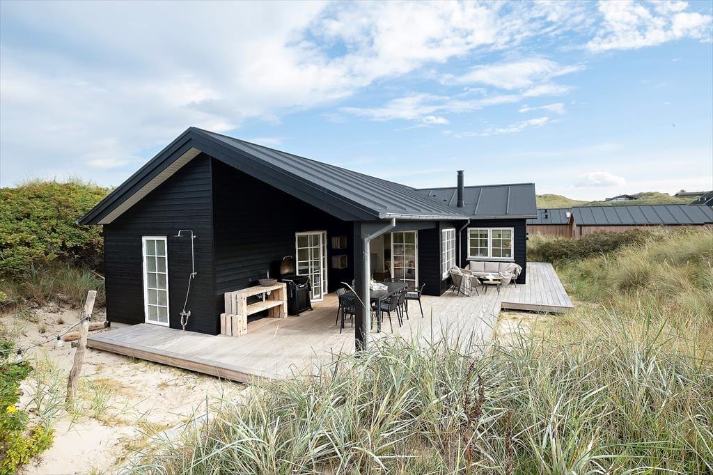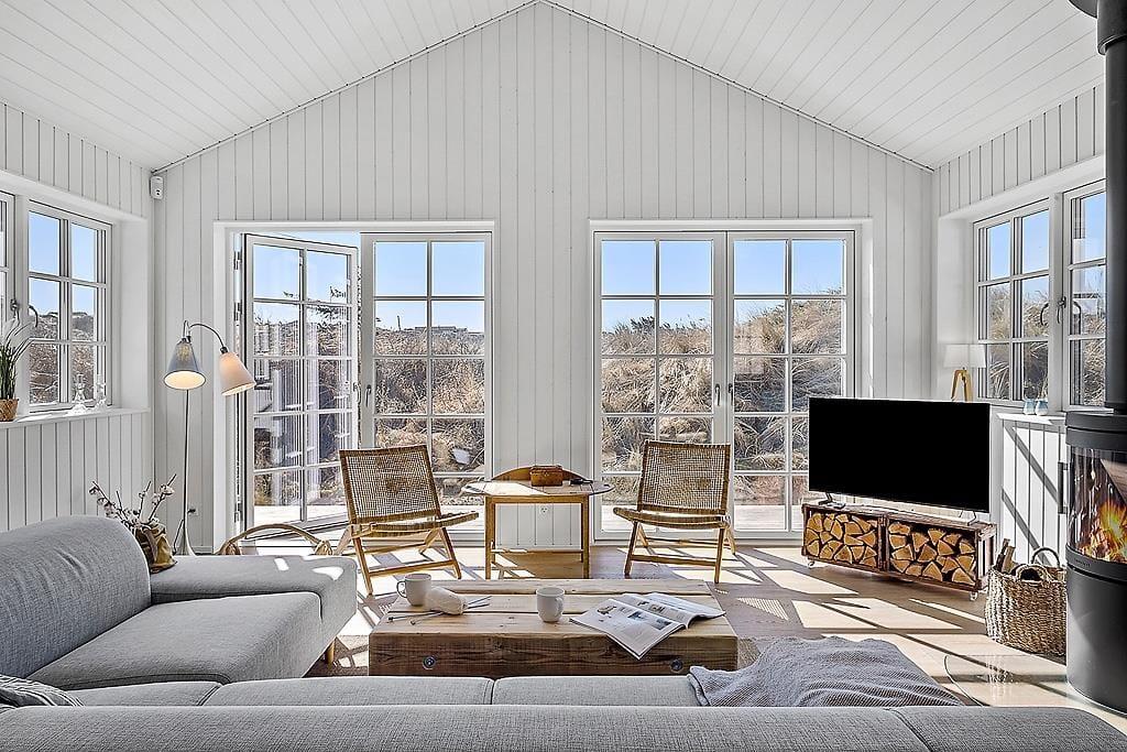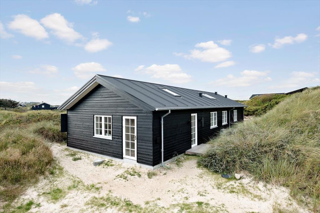 Sommerhuset byder dig velkommen med sin varme atmosfære og hyggelige indretning. De store vinduespartier trækker lyset og naturen helt ind i opholdsrummet, hvor du kan nyde udsigten til de omkringliggende klitter. Her er der god plads til både familiehygge og afslapning, hvad enten du vil sætte dig til rette i sofaen med en god bog eller samles om spisebordet til en lækker middag. Det veludstyrede køkken gør det let at trylle lækre retter frem, og efter en dag fuld af oplevelser kan du forkæle dig selv med en tur i husets sauna, hvor du kan lade varmen omfavne dig, mens du nyder udsigten til naturen.