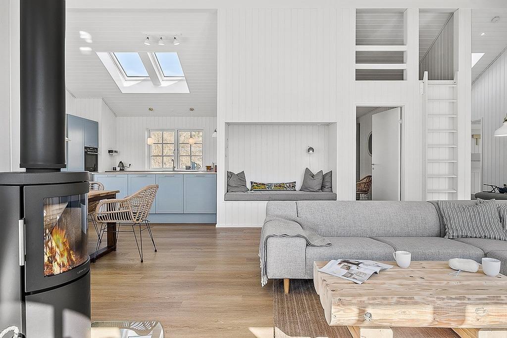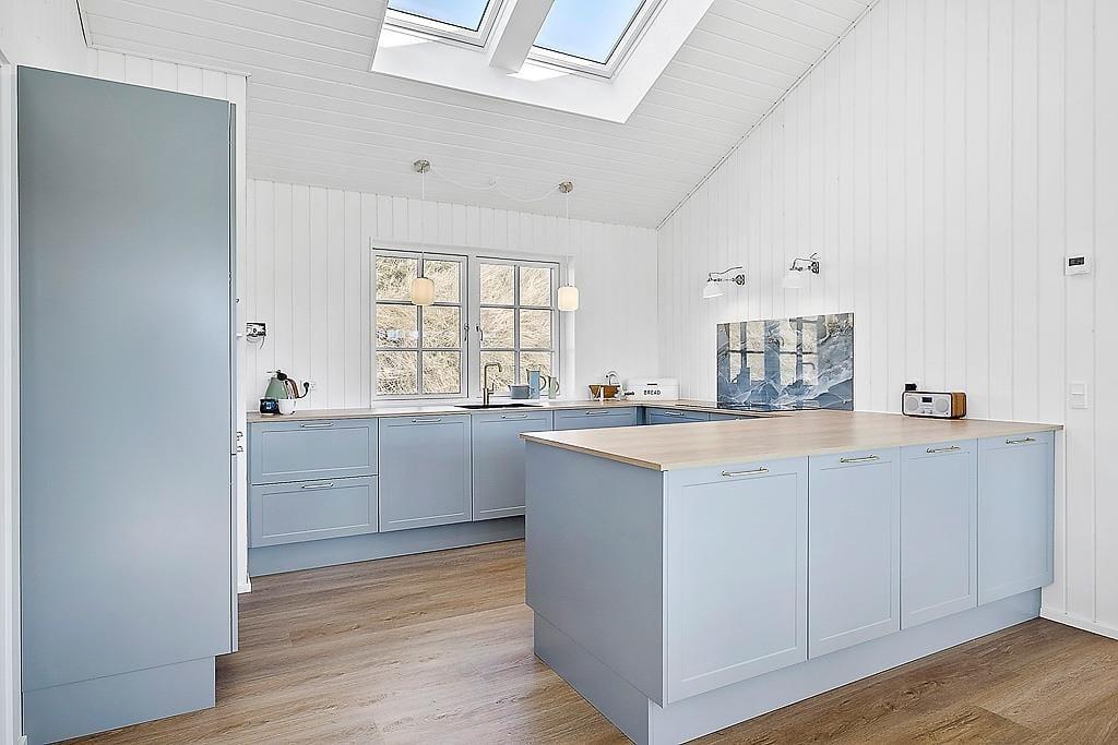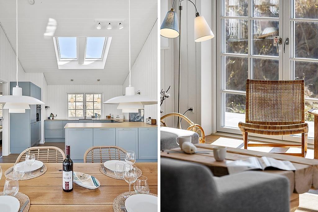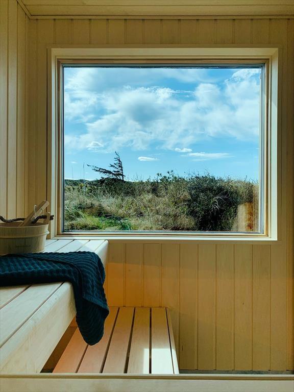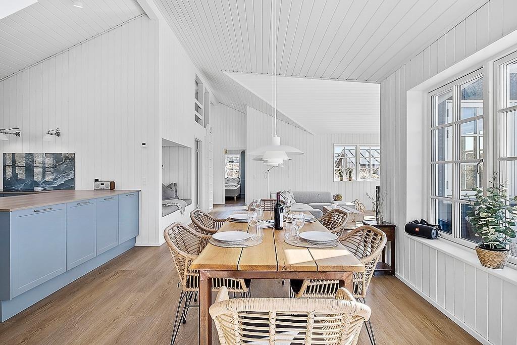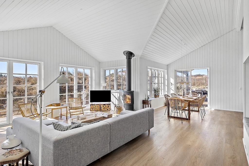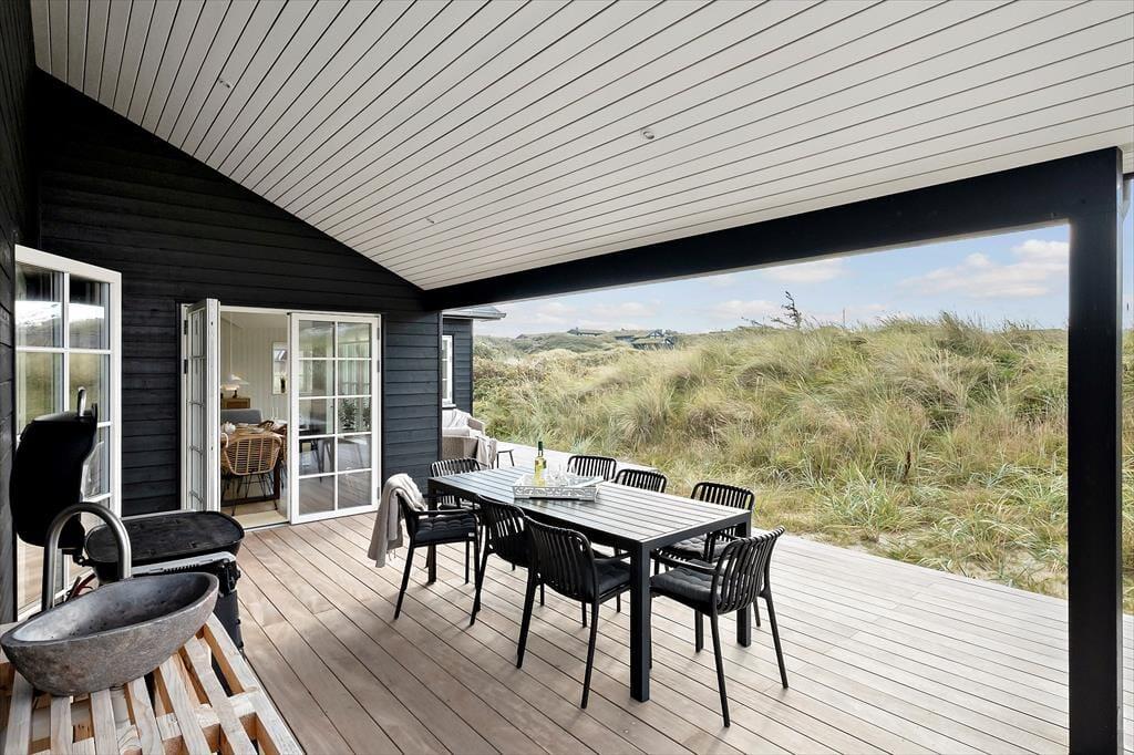 Sommerhuset byder dig velkommen med sin varme atmosfære og hyggelige indretning. De store vinduespartier trækker lyset og naturen helt ind i opholdsrummet, hvor du kan nyde udsigten til de omkringliggende klitter. Her er der god plads til både familiehygge og afslapning, hvad enten du vil sætte dig til rette i sofaen med en god bog eller samles om spisebordet til en lækker middag. Det veludstyrede køkken gør det let at trylle lækre retter frem, og efter en dag fuld af oplevelser kan du forkæle dig selv med en tur i husets sauna, hvor du kan lade varmen omfavne dig, mens du nyder udsigten til naturen.