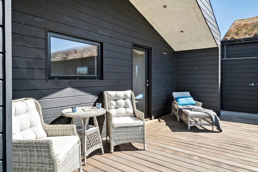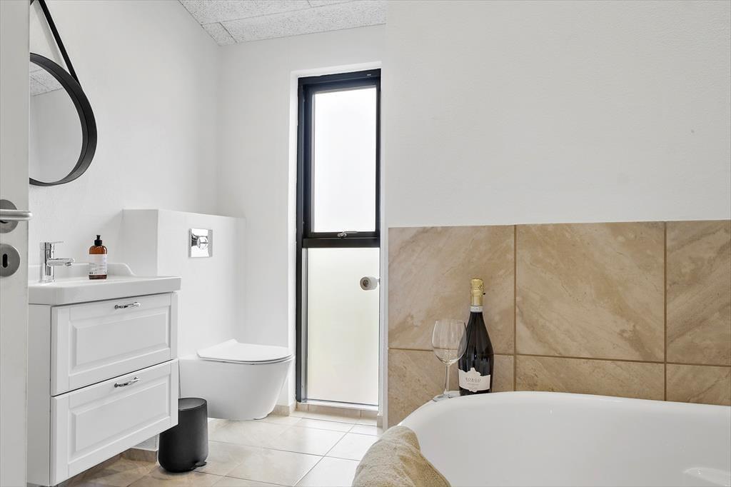 Udenfor finder I en stor terrasse, hvor solen kan nydes hele dagen. Den rummelige naturgrund giver mulighed for leg og aktiviteter, og det separate anneks med eget bad/toilet giver ekstra privatliv og fleksibilitet. Om aftenen kan I slappe af i spabadet og nyde den stjerneklar himmel.