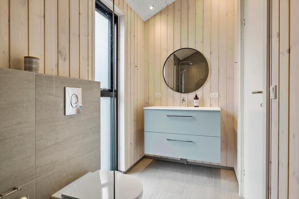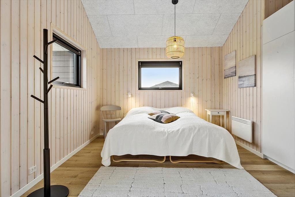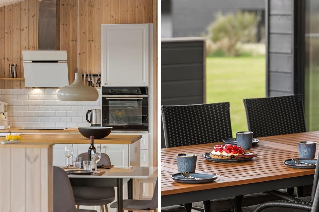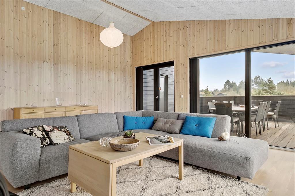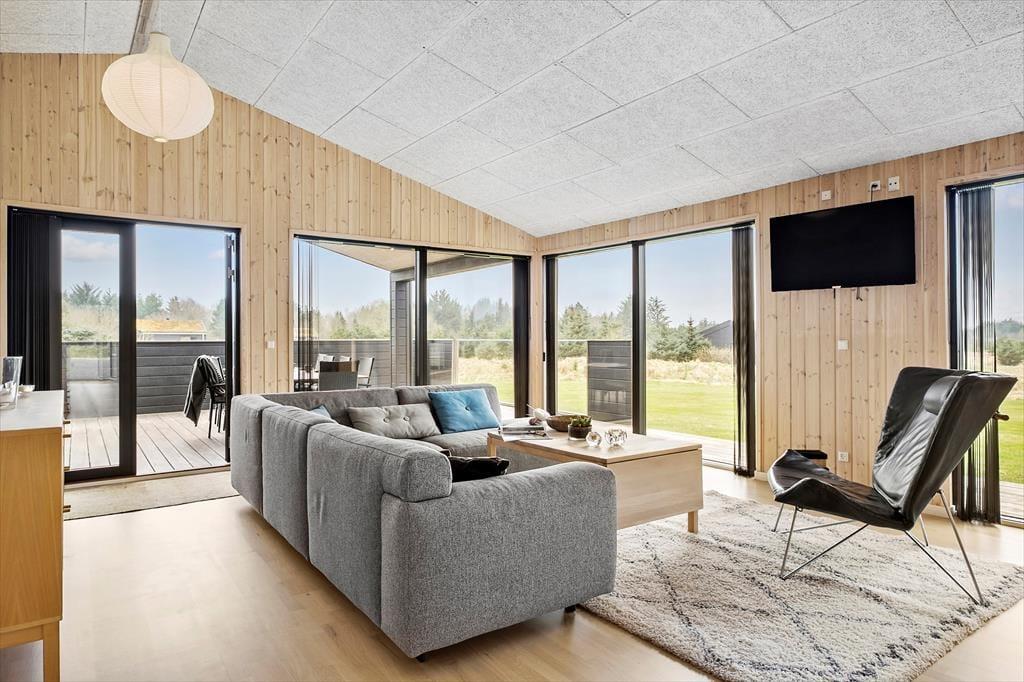 Indenfor mødes I af et lyst og åbent køkken/alrum, hvor det er nemt at samles om måltiderne eller hygge sig i stuen. De store vinduespartier giver et fantastisk lysindfald og udsigt til den omkringliggende natur. Huset er indrettet med fokus på komfort og funktionalitet, hvilket gør det til et ideelt sted at tilbringe ferien.