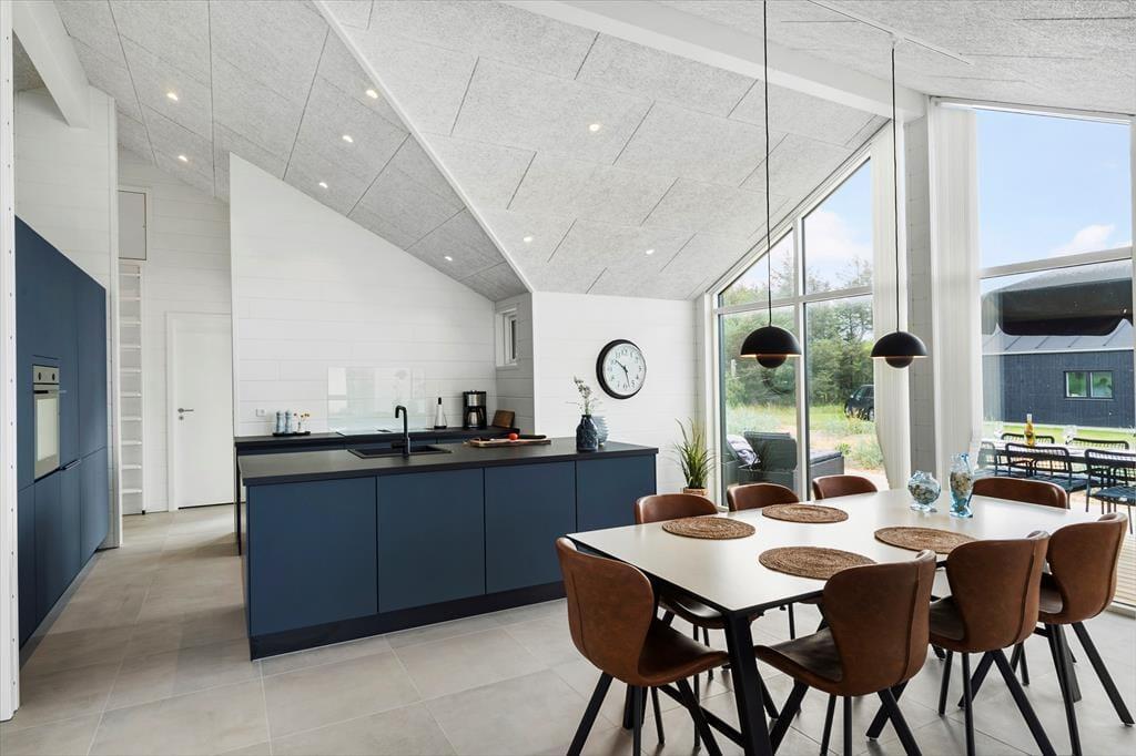 Når du træder ind i dette sommerhus, mødes du af en lys og indbydende atmosfære, hvor moderne design og funktionalitet går hånd i hånd. De åbne opholdsrum indbyder til samvær og hygge, hvad enten det er omkring spisebordet med en hjemmelavet middag eller i sofaen med en god bog. De store vinduespartier lader dagslyset strømme ind og skaber en naturlig forbindelse mellem inde og ude. Køkkenet er udstyret med moderne faciliteter, der gør madlavningen til en leg, og de komfortable soveværelser sikrer en god nats søvn efter en dag fyldt med oplevelser.