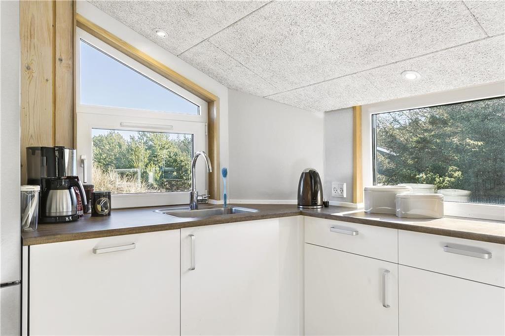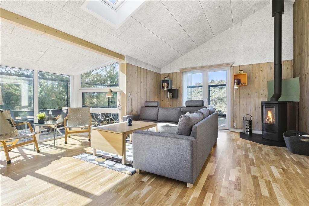 Udendørs kan du virkelig nyde ferielivet på den store terrasse, som omgiver huset. Den sydvendte terrasse giver dig mulighed for at finde sol hele dagen og nyde de smukke omgivelser med udsigt til klitlandskabet. Uanset om du vil nyde morgenkaffen i solen, slappe af med en god bog eller nyde et måltid under åben himmel, er der altid en dejlig plads på terrassen. Den ugenerte placering betyder, at du kan være helt for dig selv, mens du nyder den friske luft. Det er også et perfekt sted at samle familien og hygge sig på de lune sommeraftener, mens brændeovnen står klar til at skabe ekstra varme på de køligere dage.